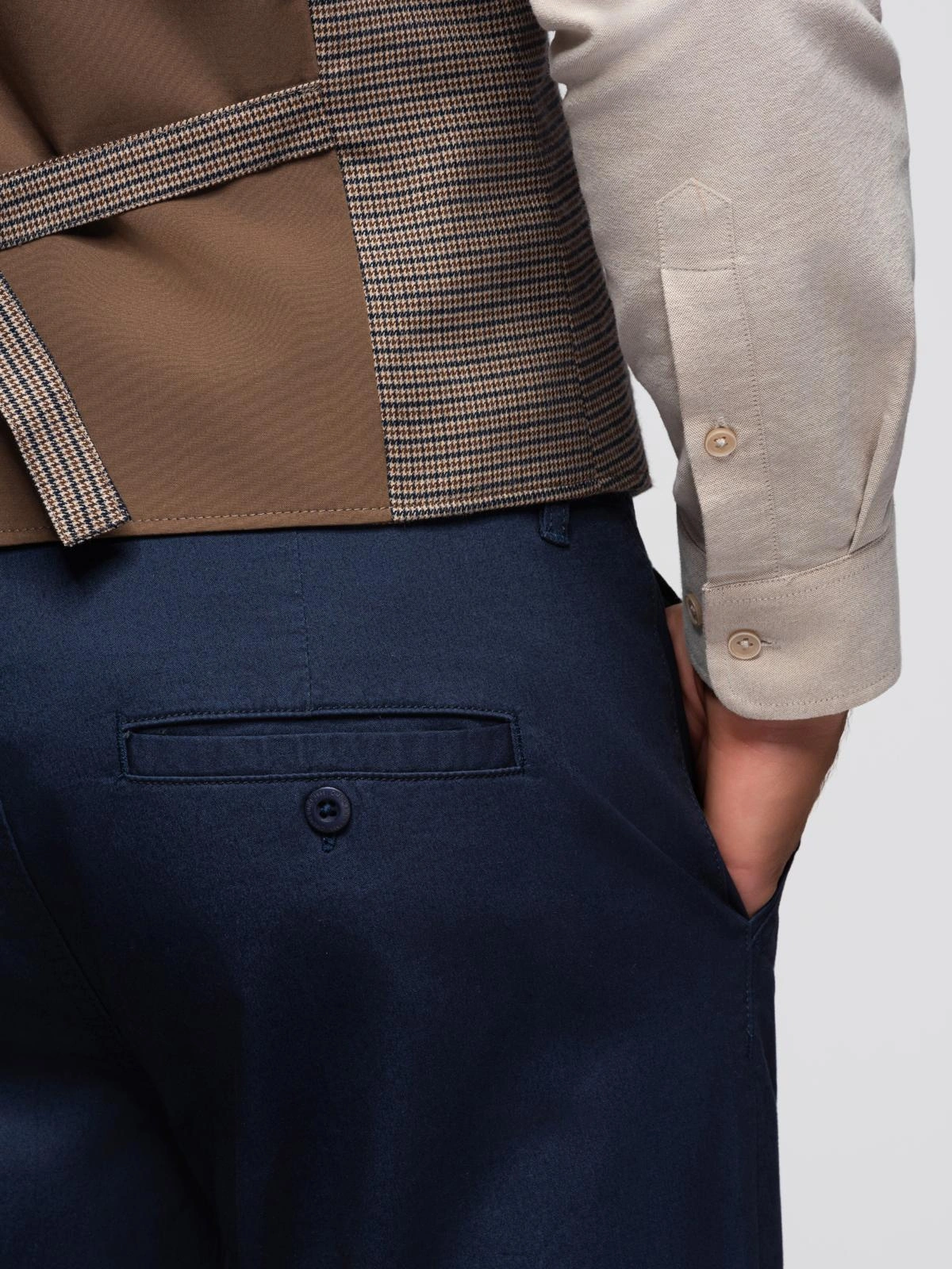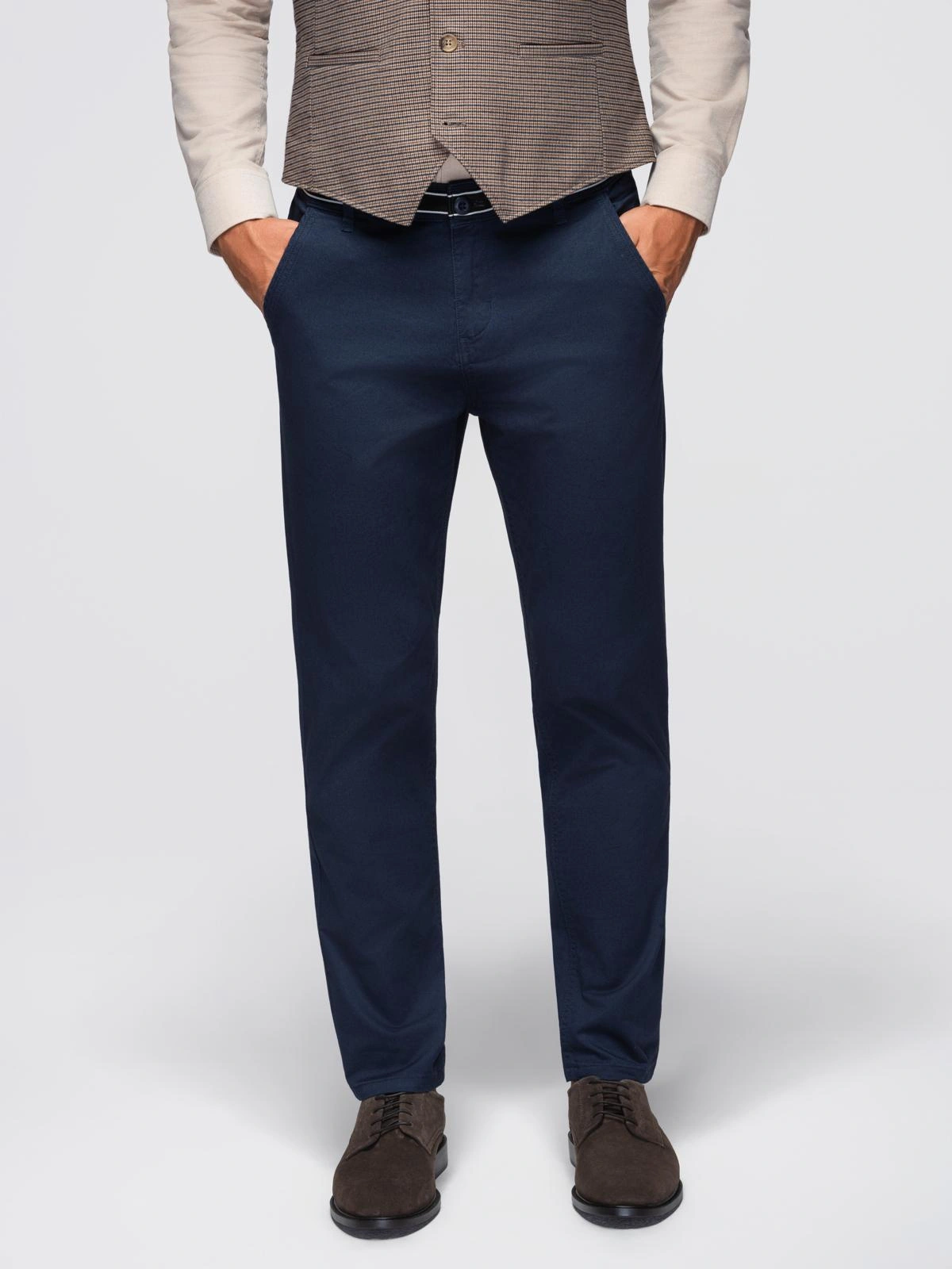 Vyriškos chino kelnės su dekoratyvine juosta - tamsiai mėlynos V2 OM-PACP-0118