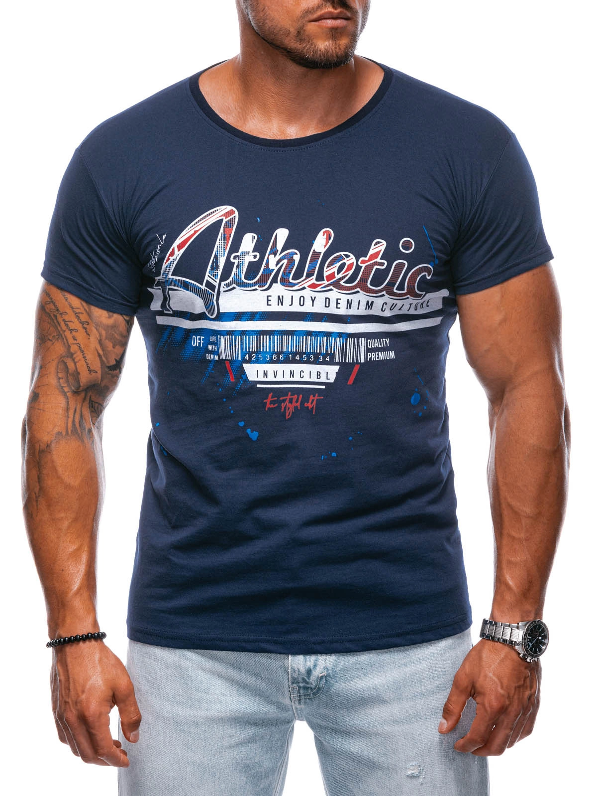 T-SHIRT MĘSKI Z NADRUKIEM S1392 - BIAŁY