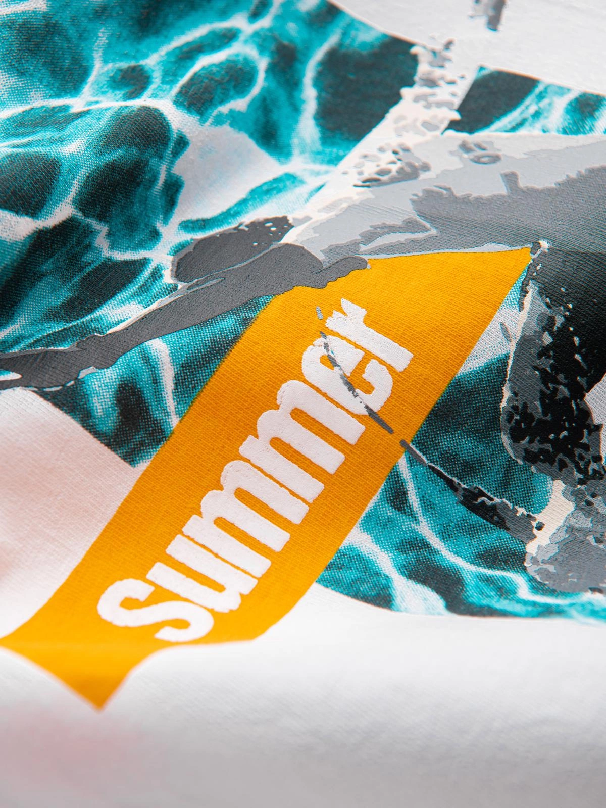 Summer Vibe medvilninis vyriškas marškinėlis su spauda - baltas V2 OM-TSTT-0191
