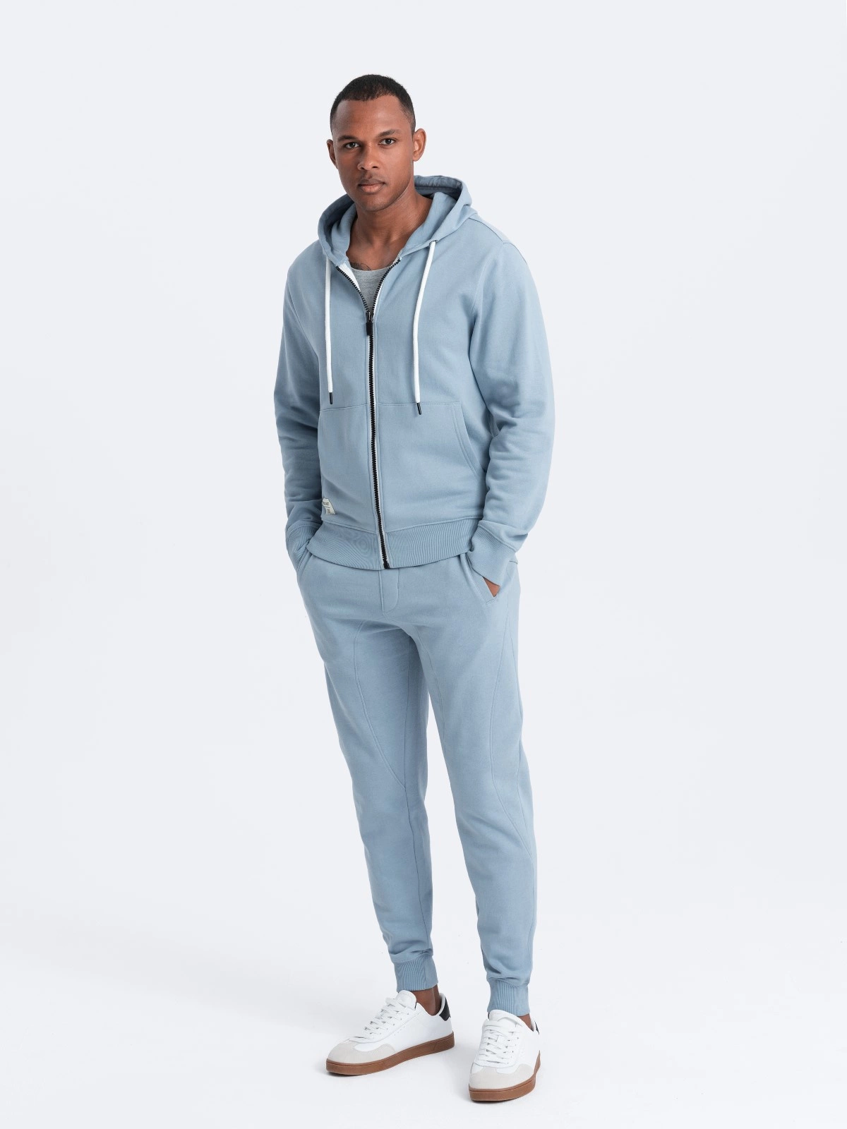 Vyriško sportinio kostiumo komplektas - marškinėliai su užtrauktuku ir sportinės kelnės - mėlyna V7 Z82