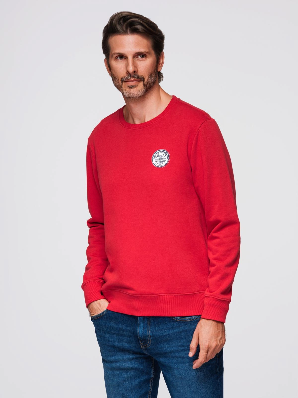 Vyriški neperšlampami marškinėliai su kolegijos stiliaus lopais - raudoni V1 OM-SSNZ-0134
