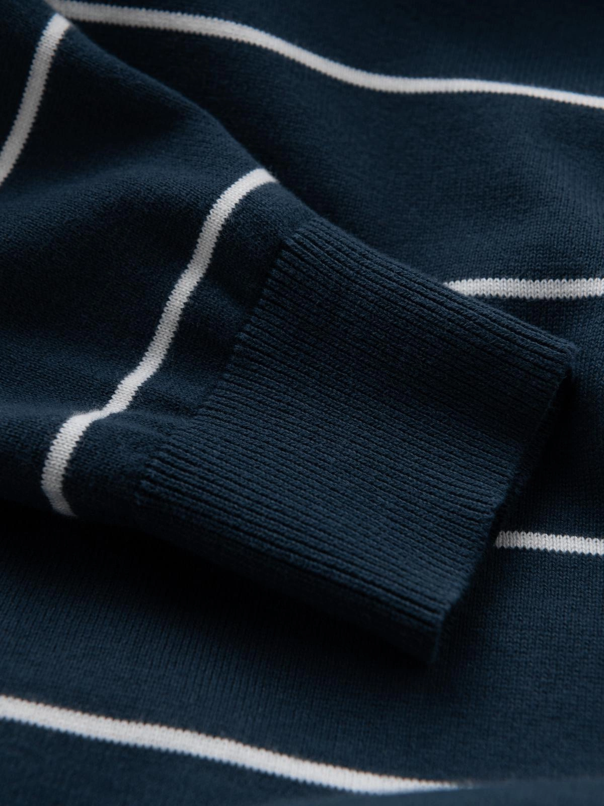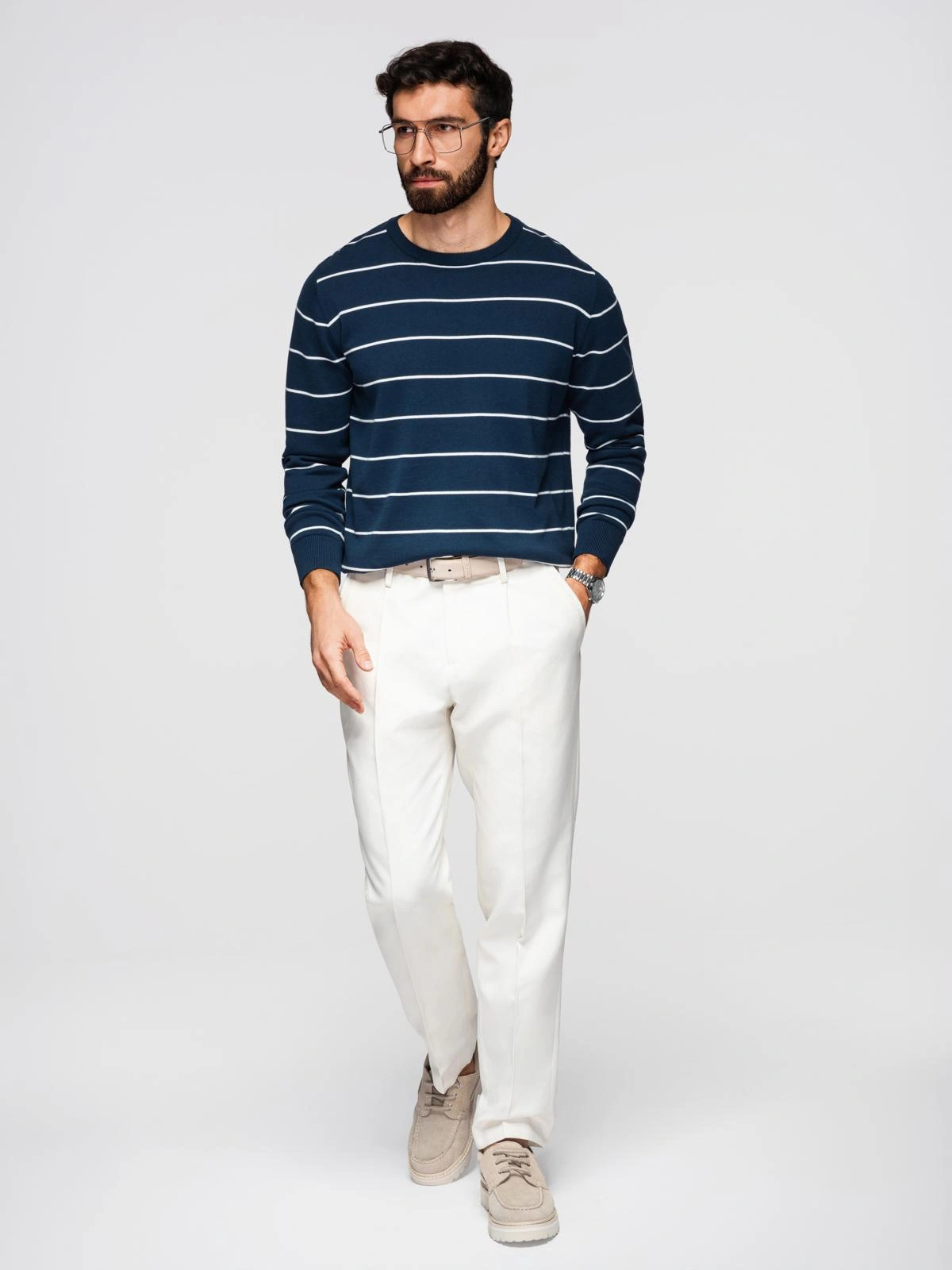Vyriškas laisvalaikio džemperis su horizontaliais dryžiais - tamsiai mėlynas V1 OM-SWSW-0143