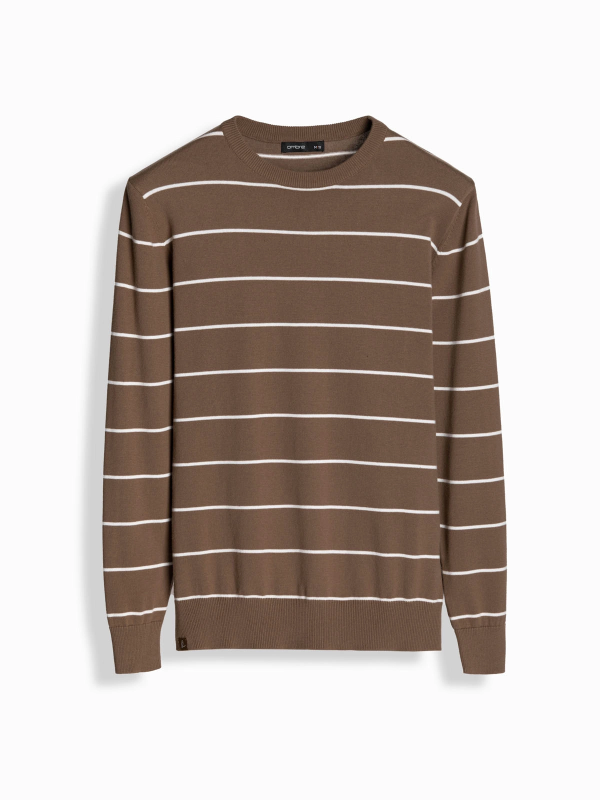 Vyriškas laisvalaikio džemperis su horizontaliais dryžiais - rudas V3 OM-SWSW-0143