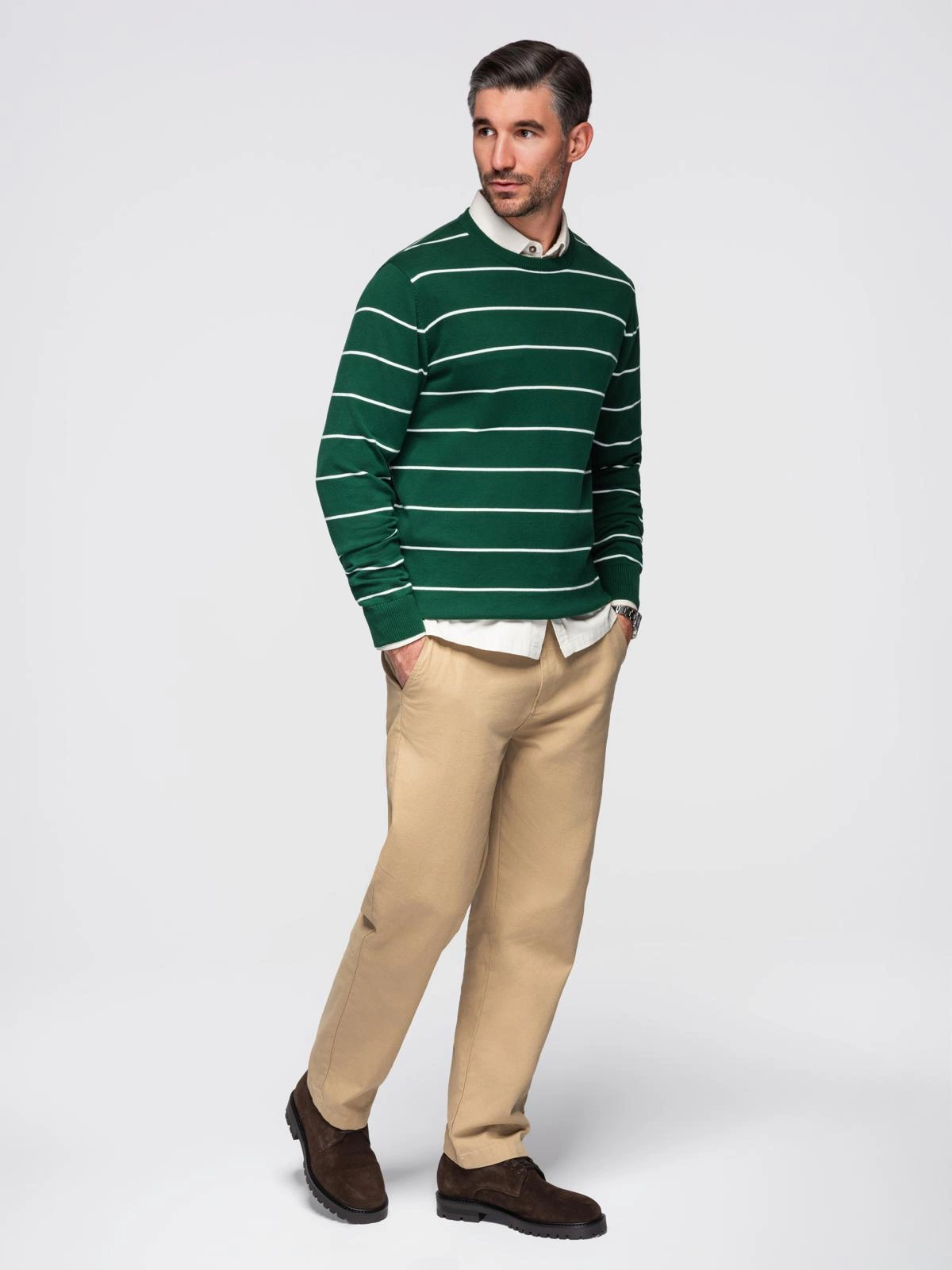 Vyriškas laisvalaikio džemperis su horizontaliomis juostelėmis - žalias V4 OM-SWSW-0143