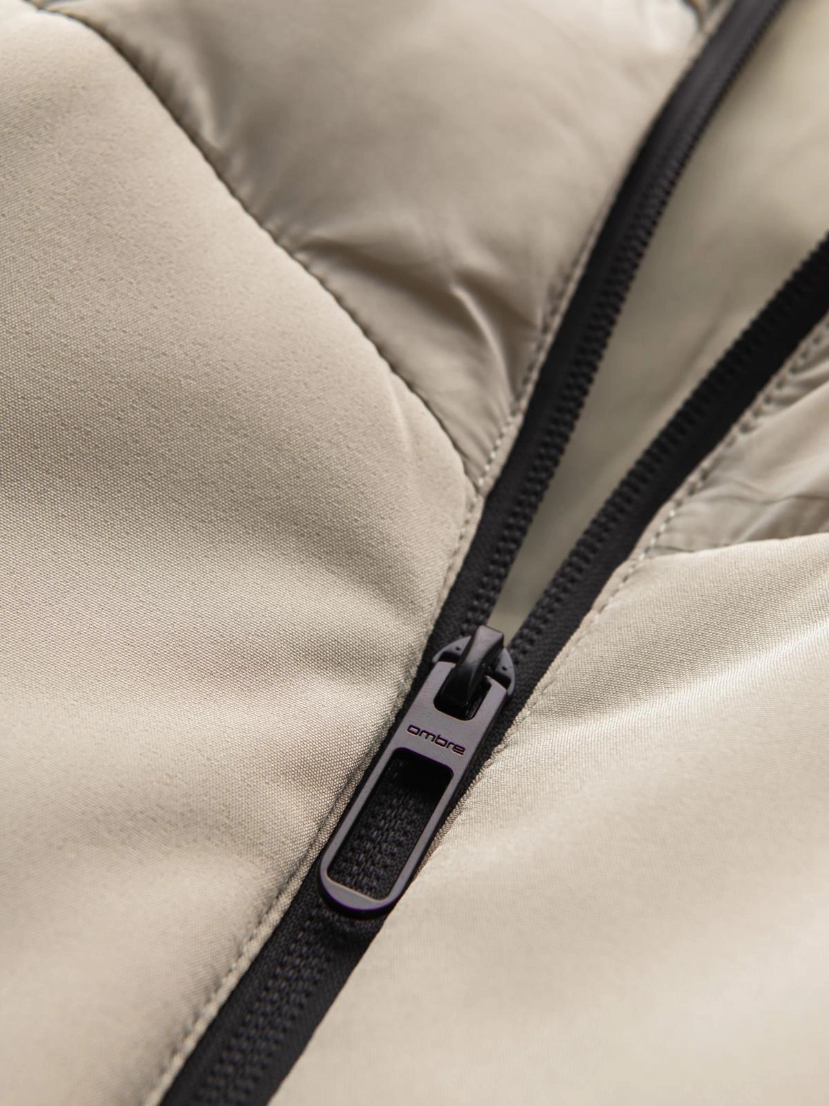 Vyriška kombinuota dygsniuota striukė su aukšta apykakle - smėlio spalvos V4 OM-JALP-0172