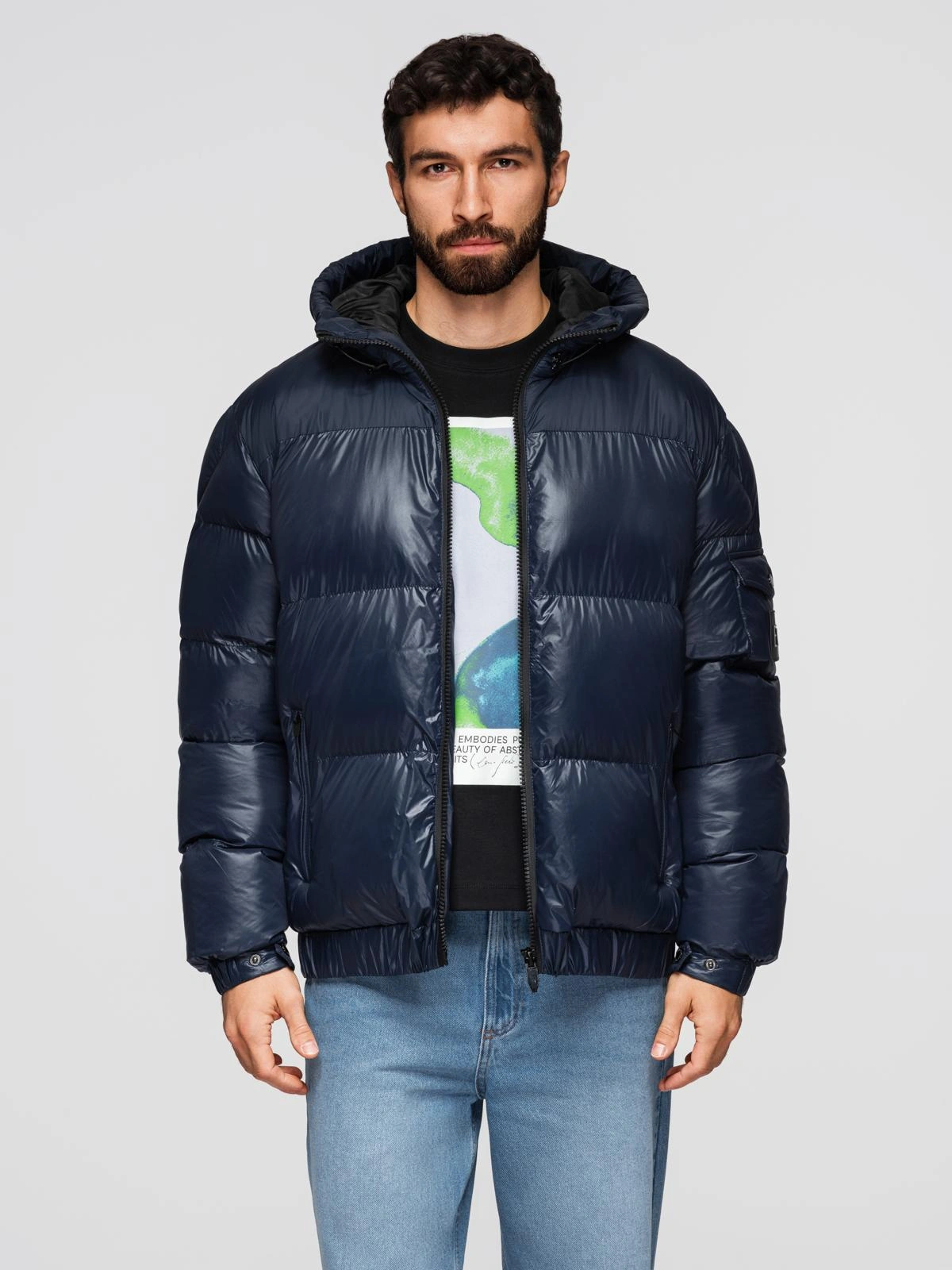 Šilta vyriška striukė su gobtuvais - tamsiai mėlyna V2 OM-JAHP-0207