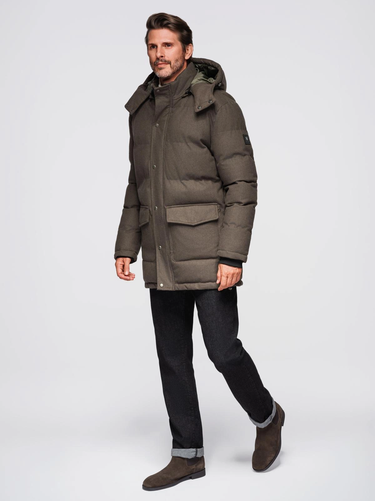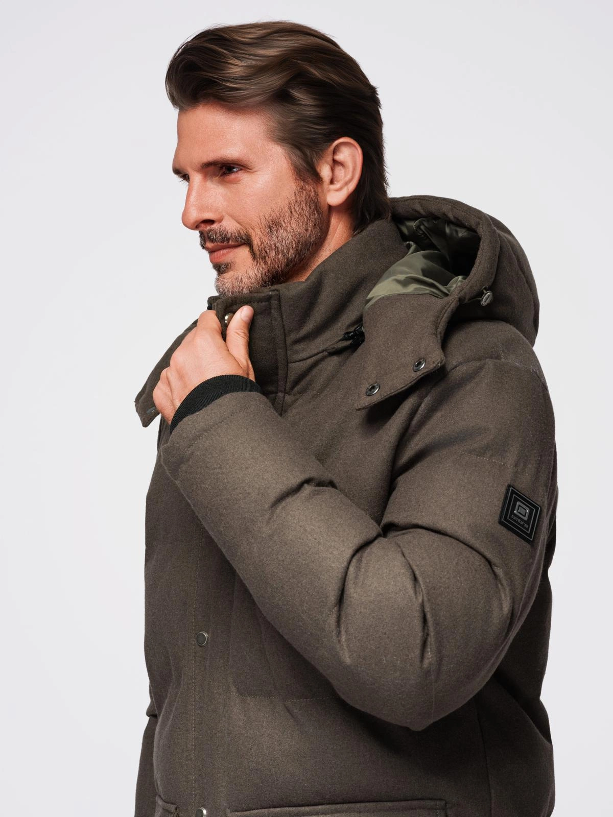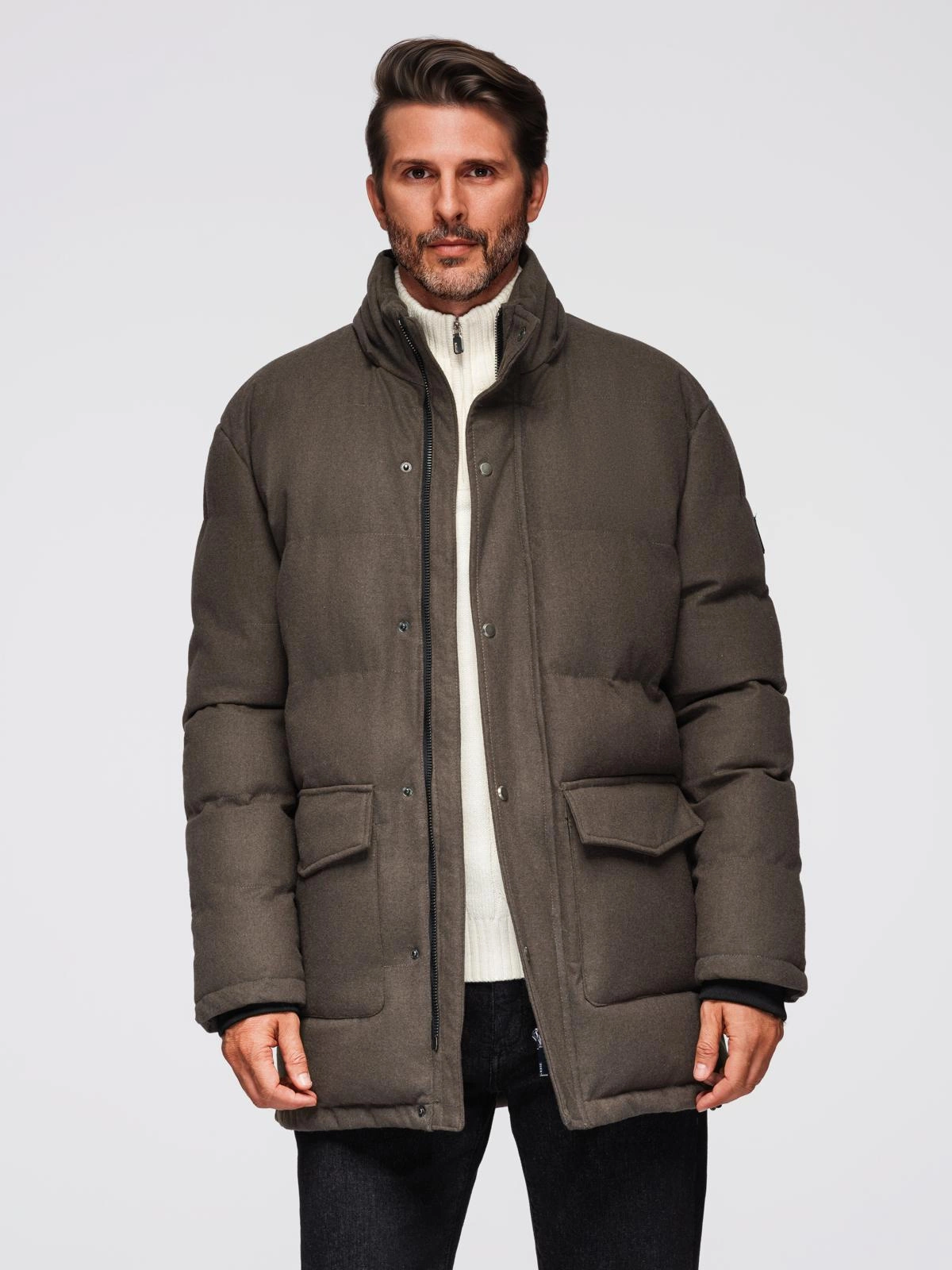 Ilga šilta vyriška striukė su vilna - tamsiai pilkas melanžas V4 OM-JALJ-0217