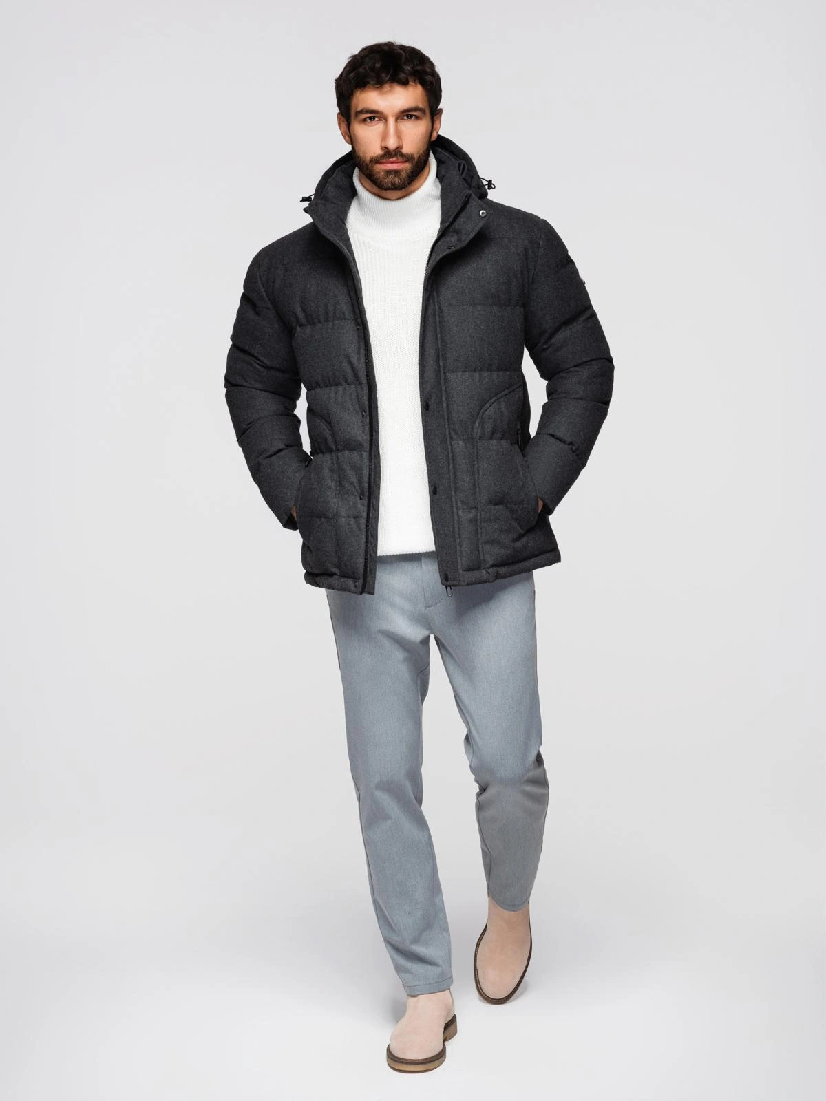 - apykaklė su atsegama apykakle ir reguliuojamu gobtuvu