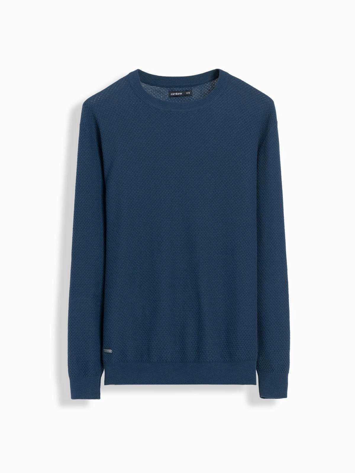 Vyriškas megztinis RELAXED FIT deimantinio trikotažo megztinis - tamsiai mėlynas V2 OM-SWSW-0110