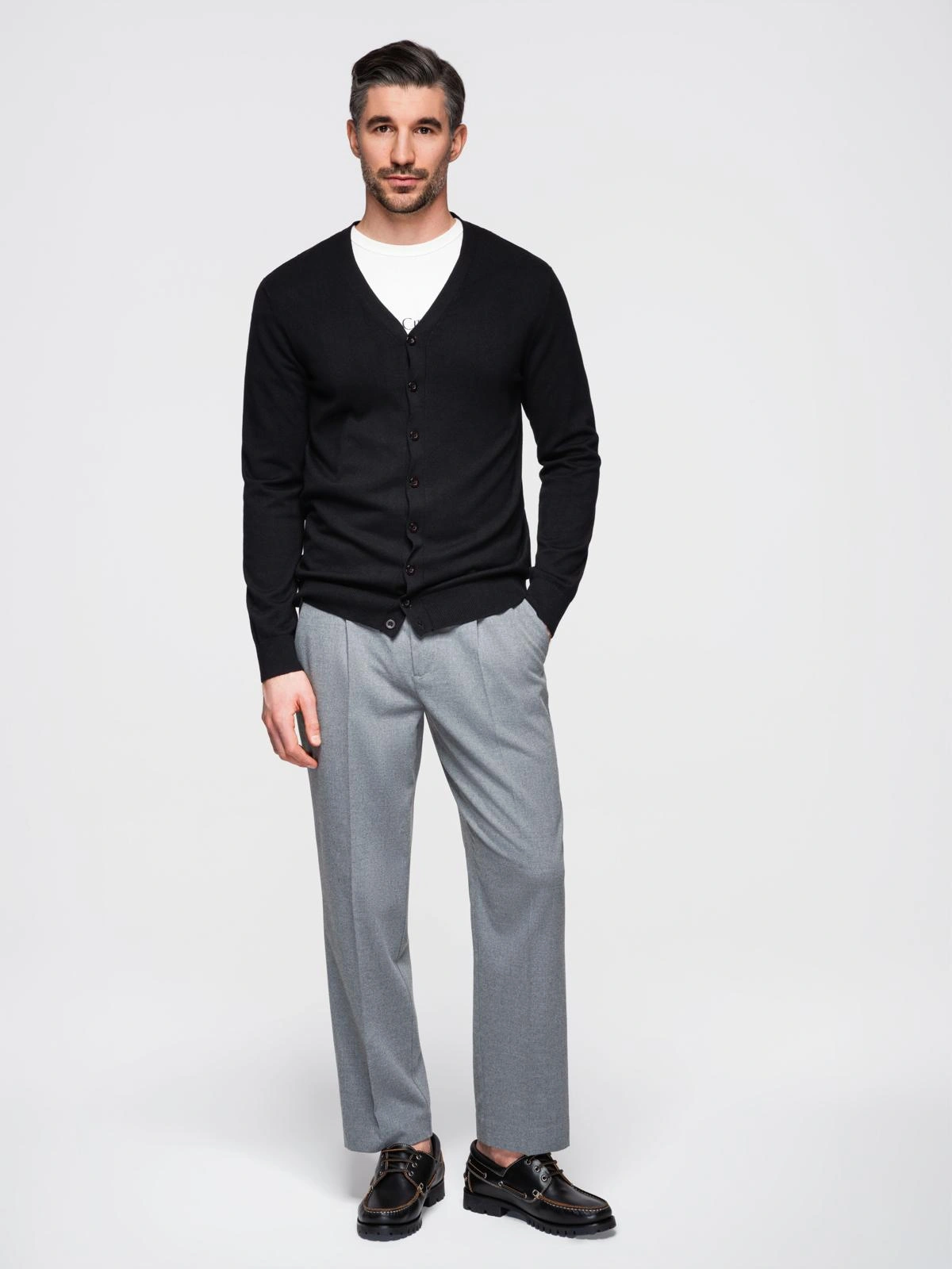 Vyriškas vienspalvis megztas megztinis iš viskozės - juodas V2 OM-SWCD-0126