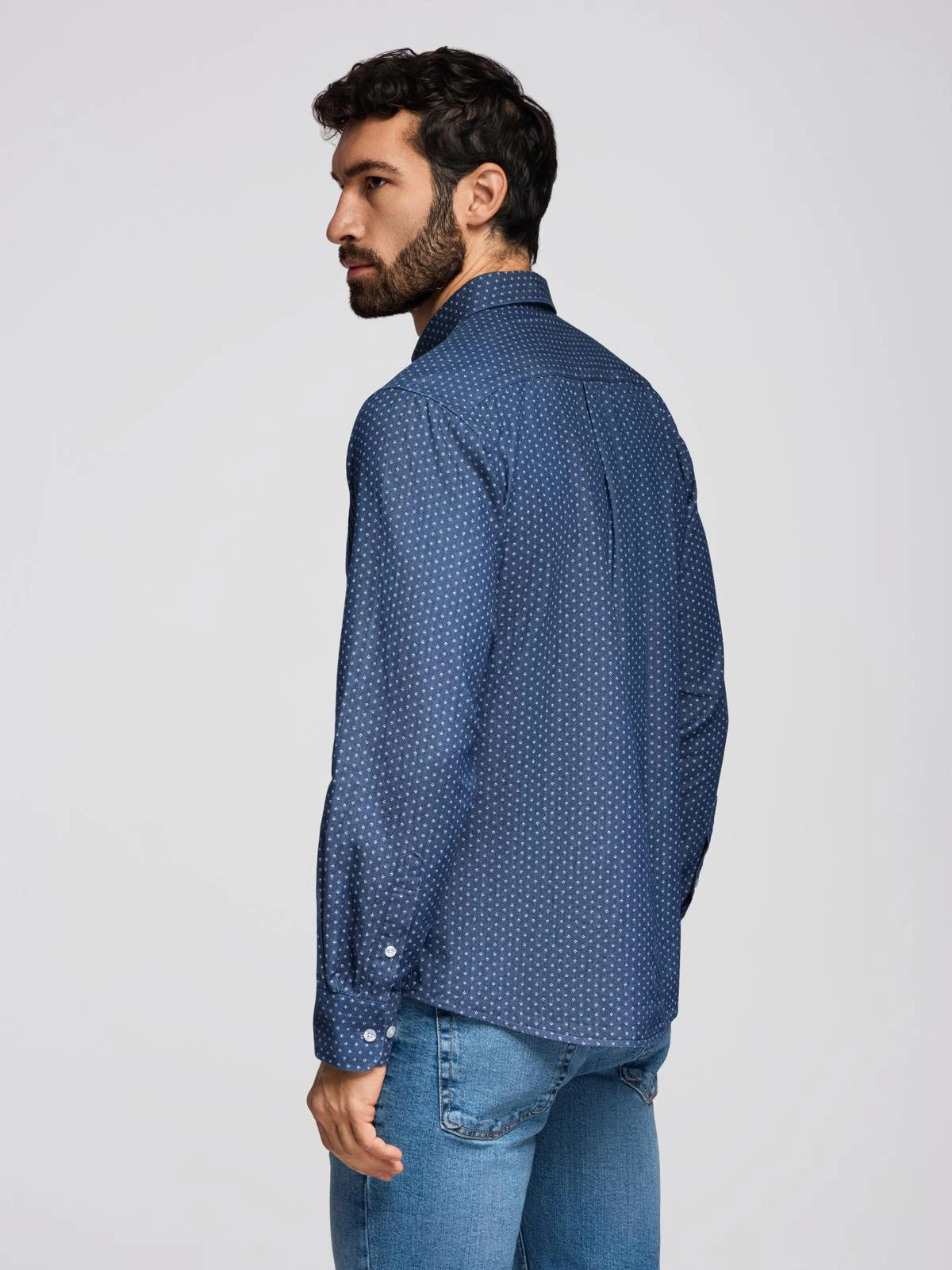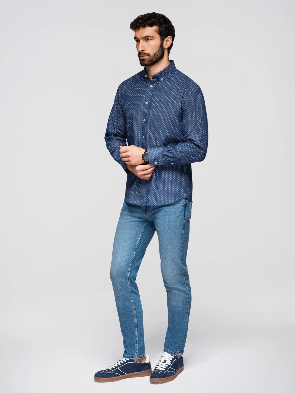 Vyriški raštuoti marškiniai su kišenėmis - mėlyni V2 OM-SHDS-0179