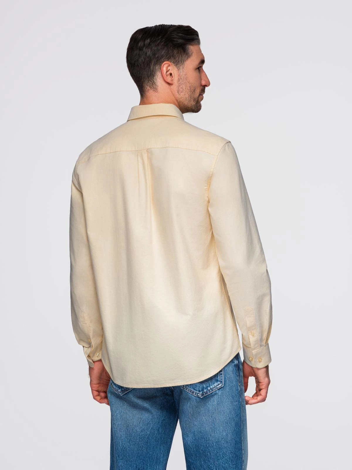 Pasteliniai medvilniniai vyriški marškiniai Oxford - šviesiai geltoni V3 OM-SHOS-0183