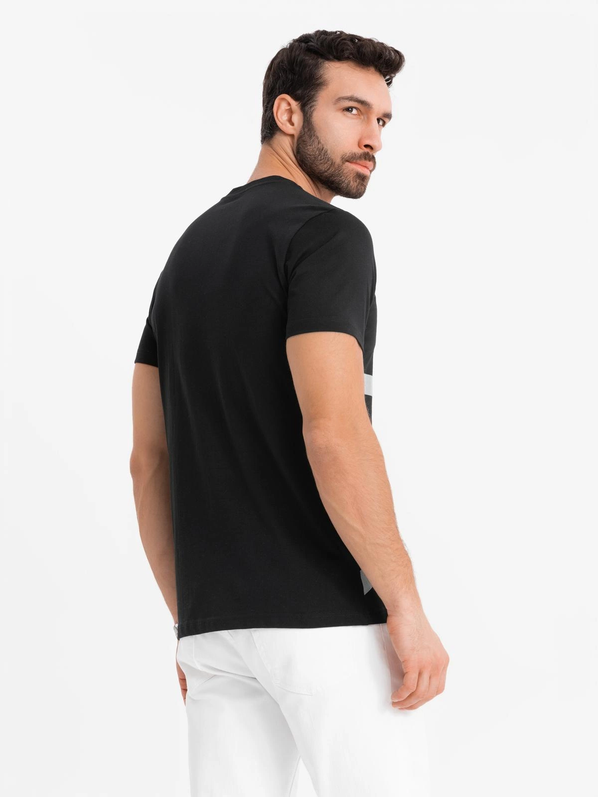 Vyriški medvilniniai trikotažiniai marškinėliai su dideliu šoniniu užrašu - juodi V1 OM-TSPT-0213