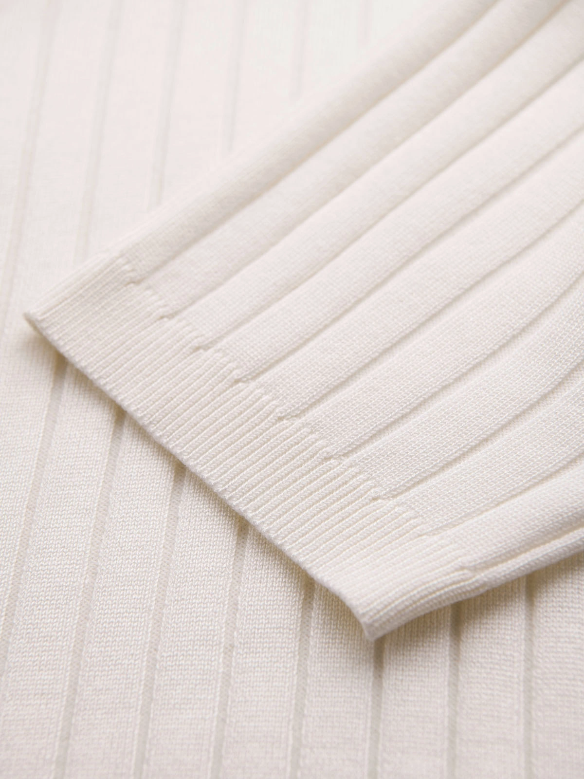 Vienspalviai polo marškinėliai iš lengvo briaunoto trikotažo - tai subtilus būdas aprangai suteikti elegancijos. Prislopintos spalvos tiks ir klasikiniams, ir nerūpestingesniems ansambliams. Minkšta, daugiausia viskozės turinti medžiaga yra maloni liesti ir priglunda prie kūno tarsi antra oda. Tai geras pasirinkimas tiems, kurie nori atrodyti elegantiškai ir kartu jaustis laisvai.
