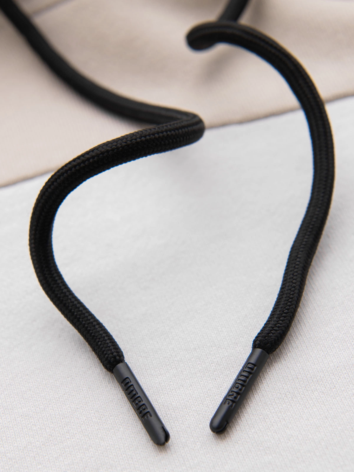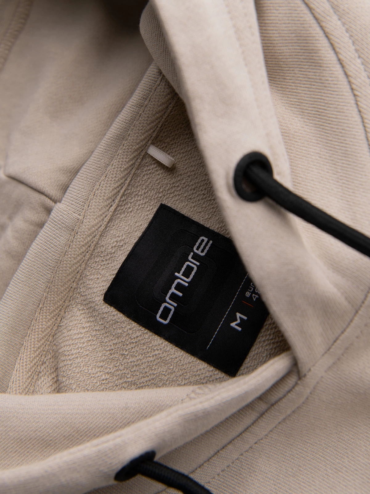 Vyriškas medvilninis džemperis su gobtuvu ir kontrastingais elementais - smėlio spalvos V2 OM-SSNZ-0225