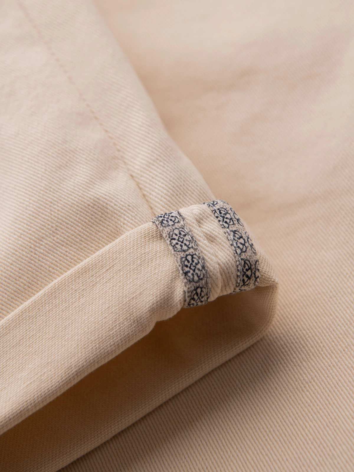 Vyriški džinsiniai klasikiniai šortai su užlenkta koja - kreminės spalvos V2 OM-SRDS-0162