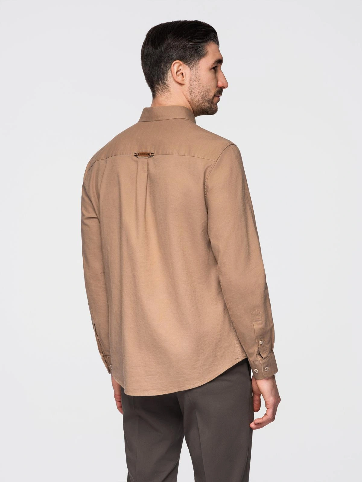 Vyriški lininiai marškiniai su klasikine apykakle ir kišenėmis REGULAR FIT - šviesiai rudi V7 OM-SHCS-0134