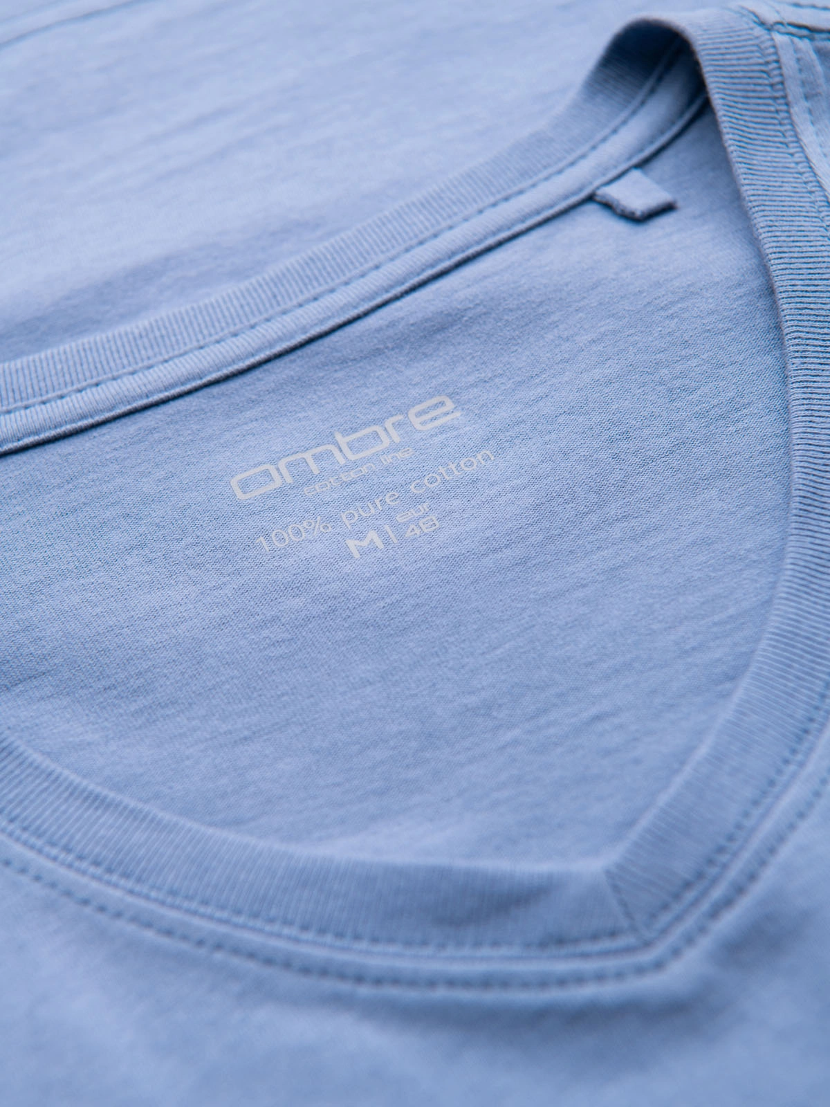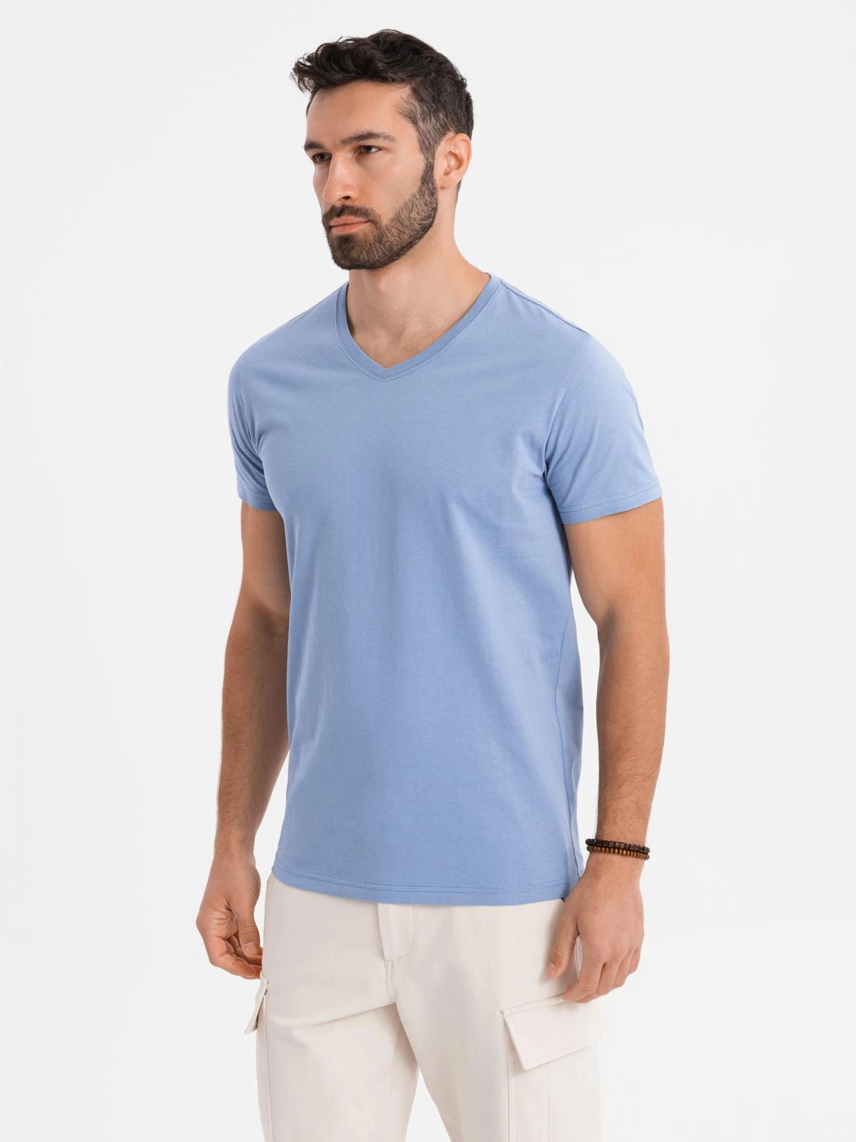 BASIC vyriški klasikiniai medvilniniai marškinėliai su V formos iškirpte - mėlyni V20 OM-TSBS-0237