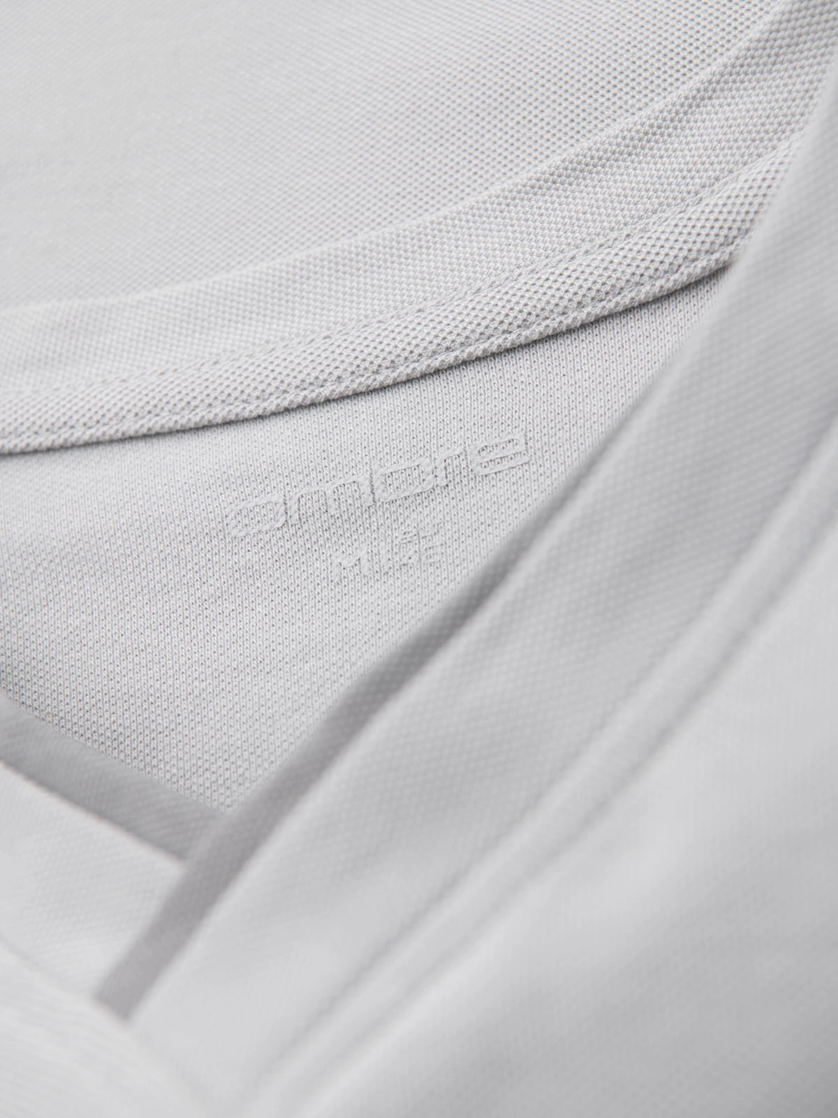 Vyriški marškinėliai su kontrastingais intarpais ir V formos iškirpte - šviesiai pilki V4 OM-TSCT-0198
