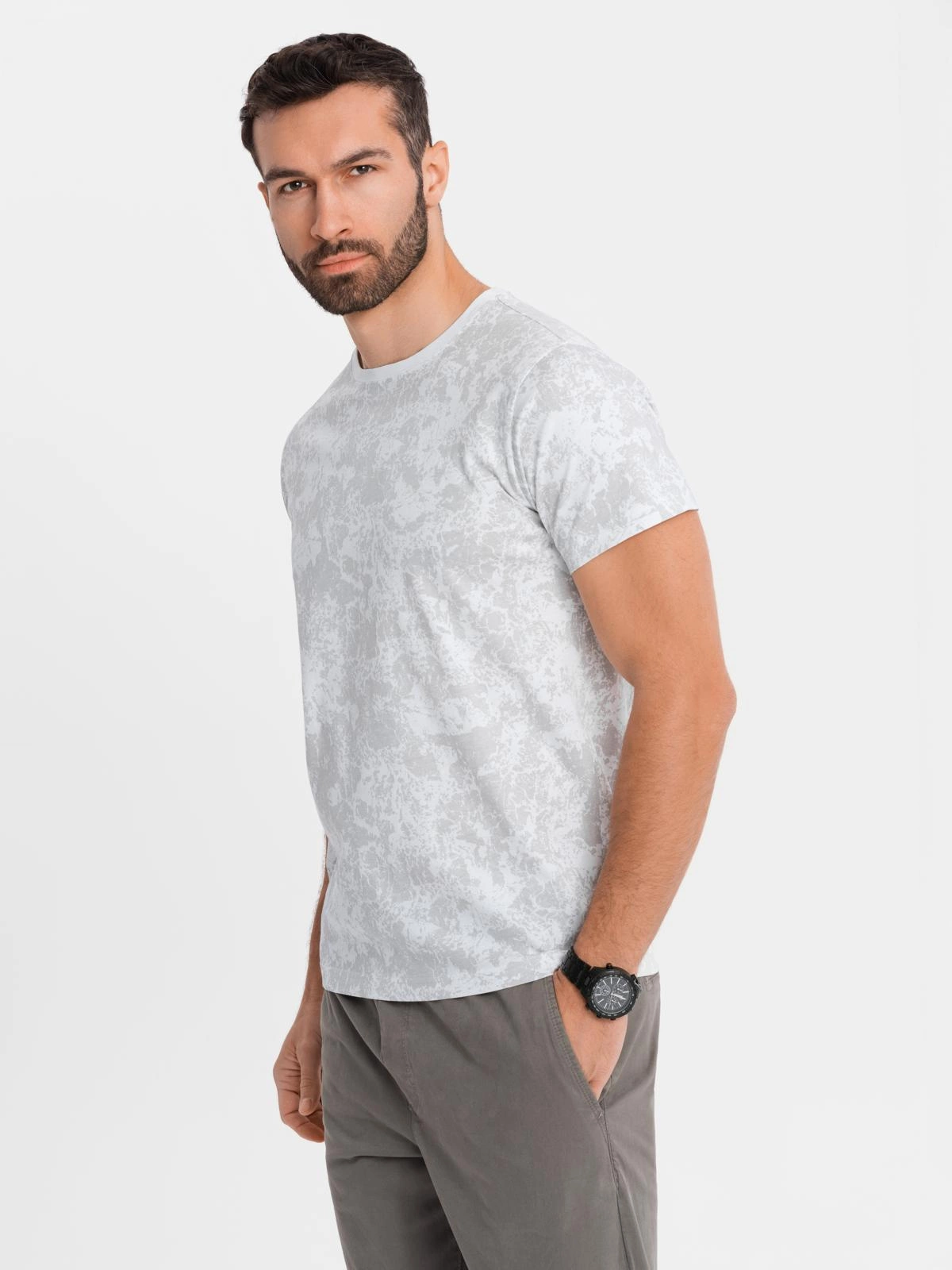 Vyriški raštuoti medvilniniai marškinėliai trumpomis rankovėmis - balti V1 OM-TSFP-0223
