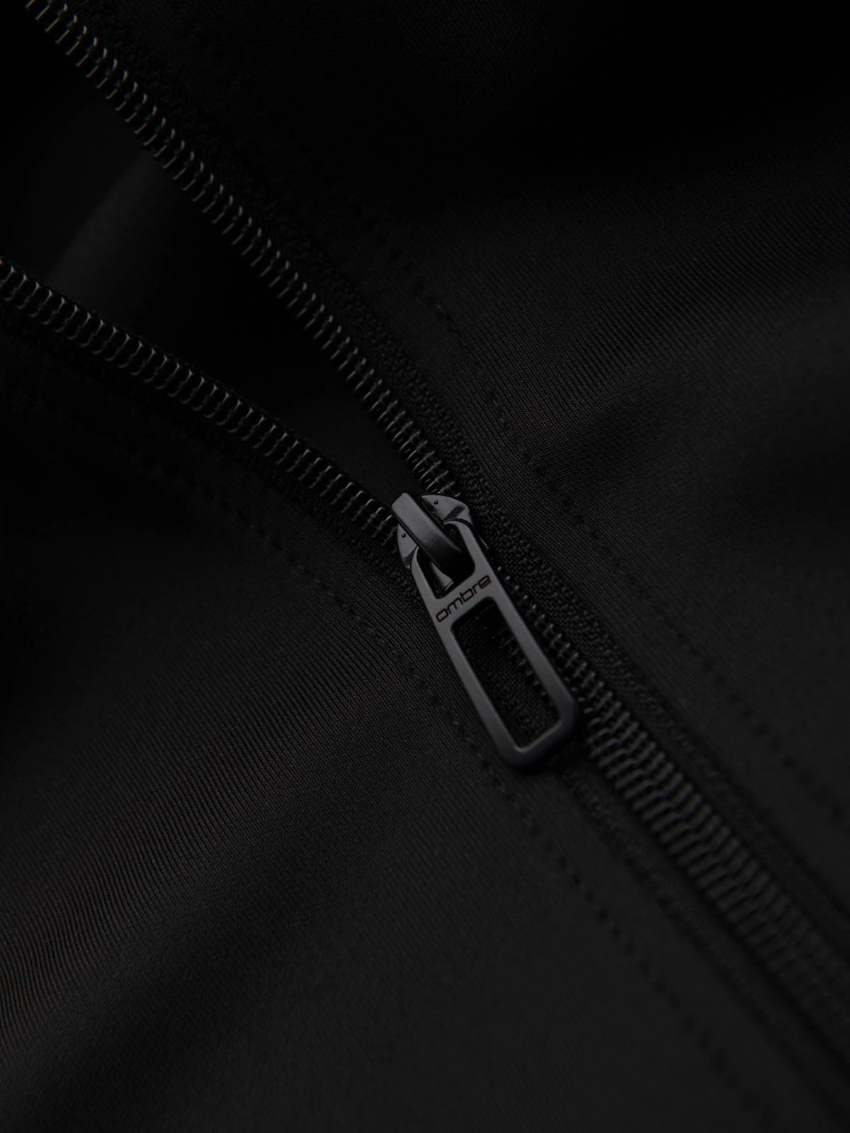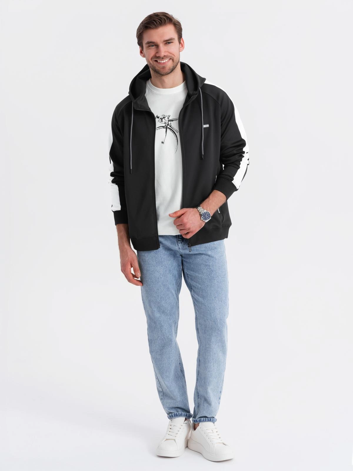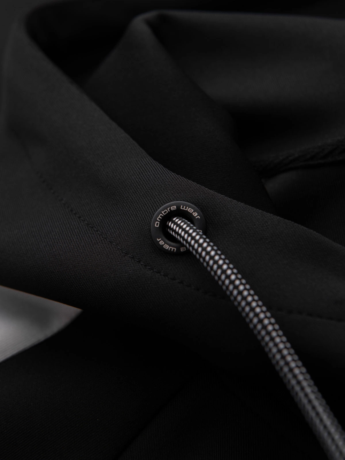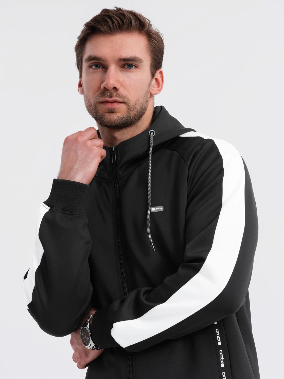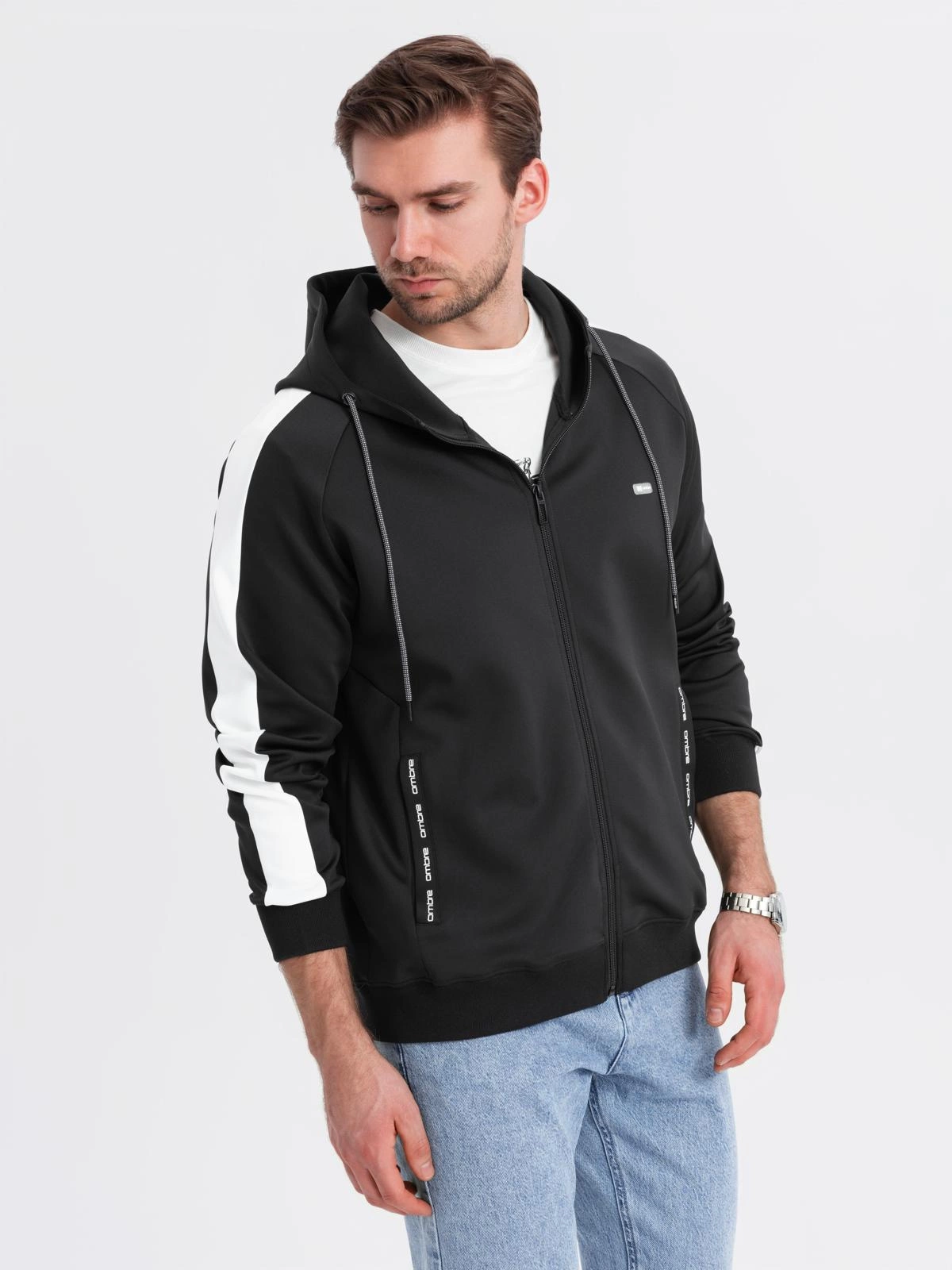 Vyriška striukė su gobtuvu su užtrauktuku ir apvadais - juoda V1 OM-SSZP-0210