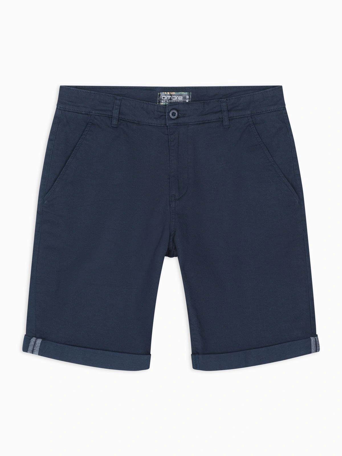 Vyriški klasikiniai chino šortai su užlenktomis kojomis - tamsiai mėlyni V10 OM-SRCS-0197