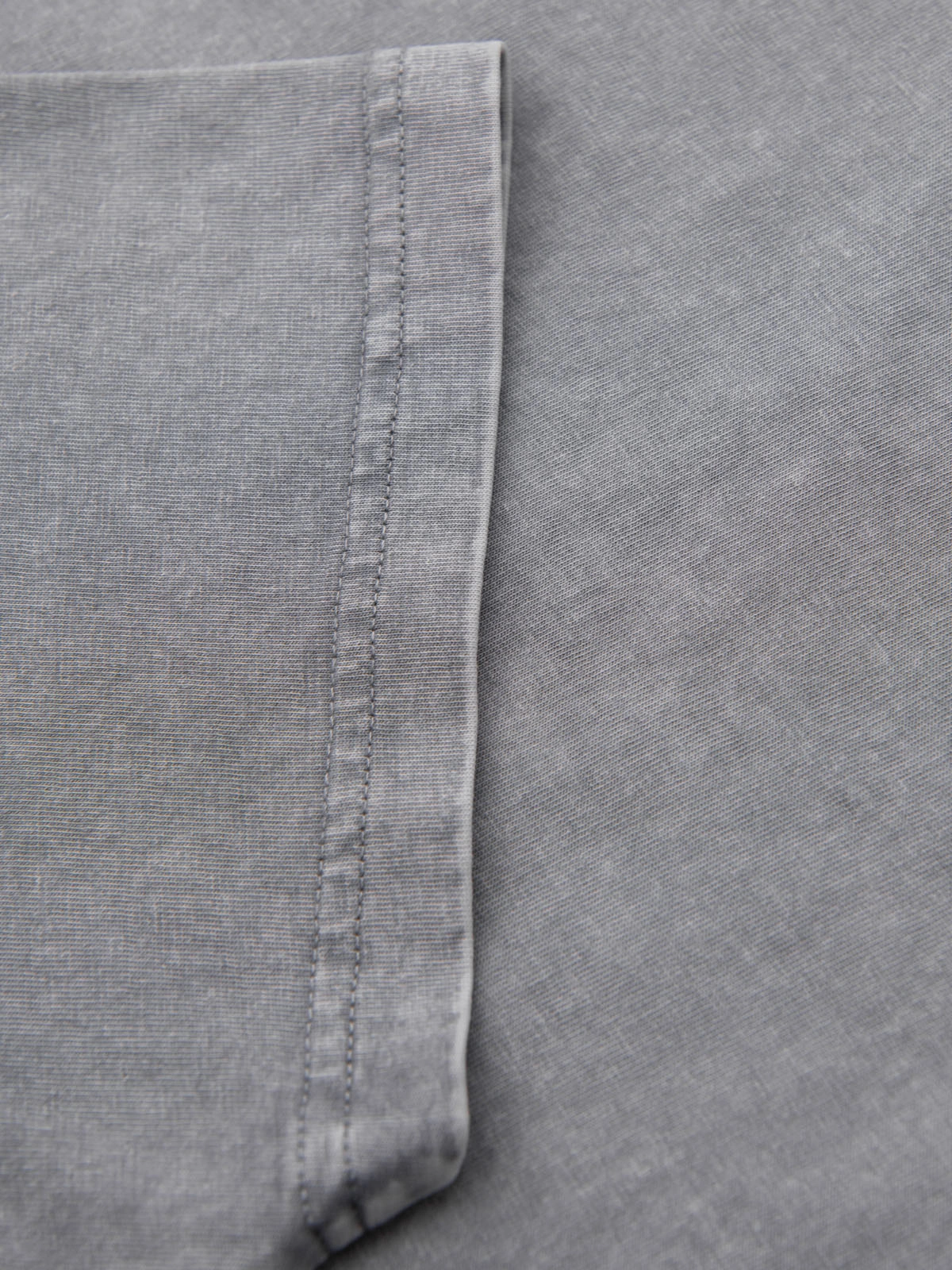 Klasikinio, taisyklingo kirpimo marškinėliai, pasiūti iš minkšto trikotažinio trikotažo iš aukštos kokybės šukuotos medvilnės. Subtilus skalbimo efektas suteikia audiniui subtilią vintažinę tekstūrą. Miesto stiliaus raštai suteikia charakterio ir sukuria kasdienį, modernų variantą vyrams, ieškantiems patogumo ir stiliaus.