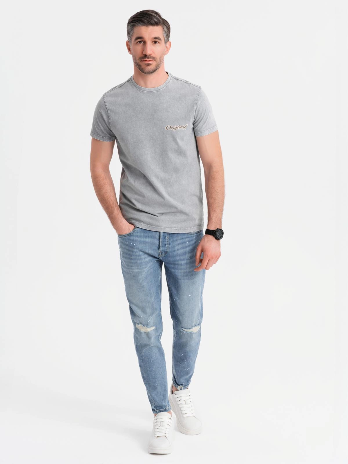 Medvilniniai marškinėliai su spauda ant krūtinės ir nugaros - pilki V1 OM-TSWT-0201