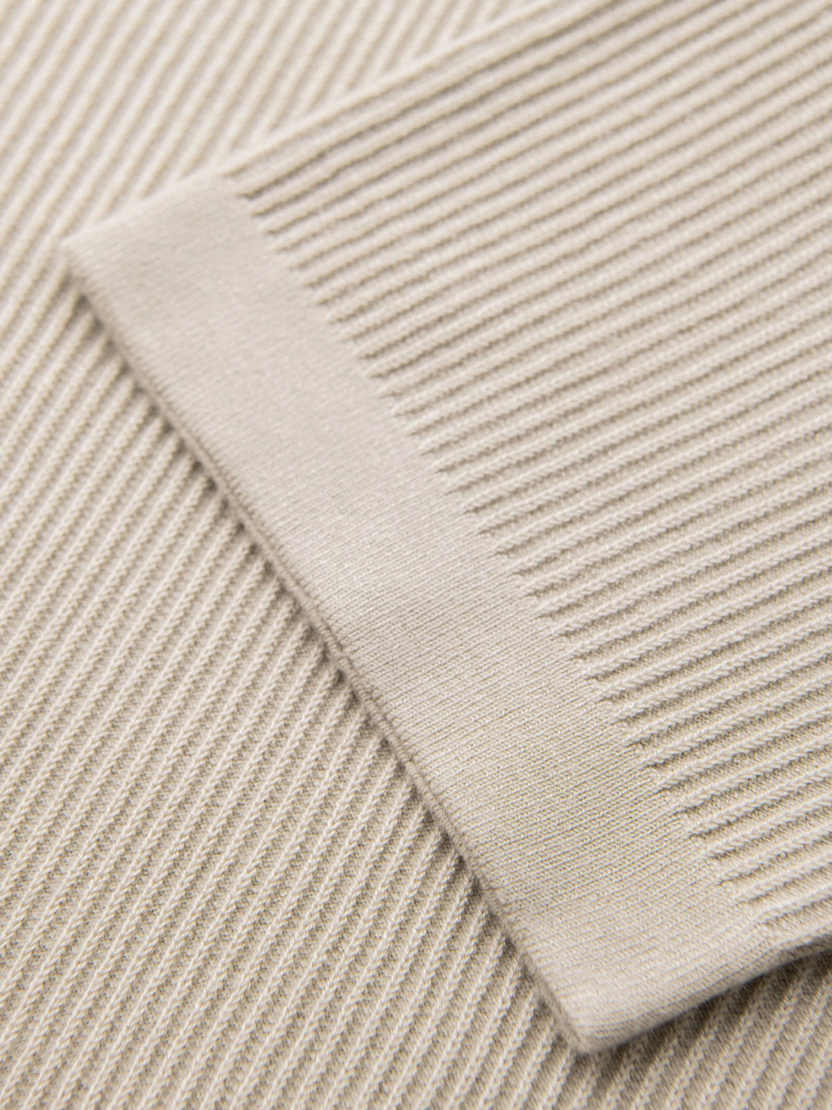 Subtilūs, bet išskirtiniai - šie megzti marškinėliai yra puikus minimalistinės formos ir rafinuotų detalių derinys. Išskirtinė audinio struktūra sukuria ryškius dryžius, kurie suteikia gilumo ir tekstūros. Šis modelis, kurio iškirptė užsegama sagomis, idealiai tinka šiltesnėms dienoms ir elegantiškam laisvalaikio stiliui. Baigtas smulkiu prekės ženklu - jis išlieka elegantiškas ir kartu modernus.