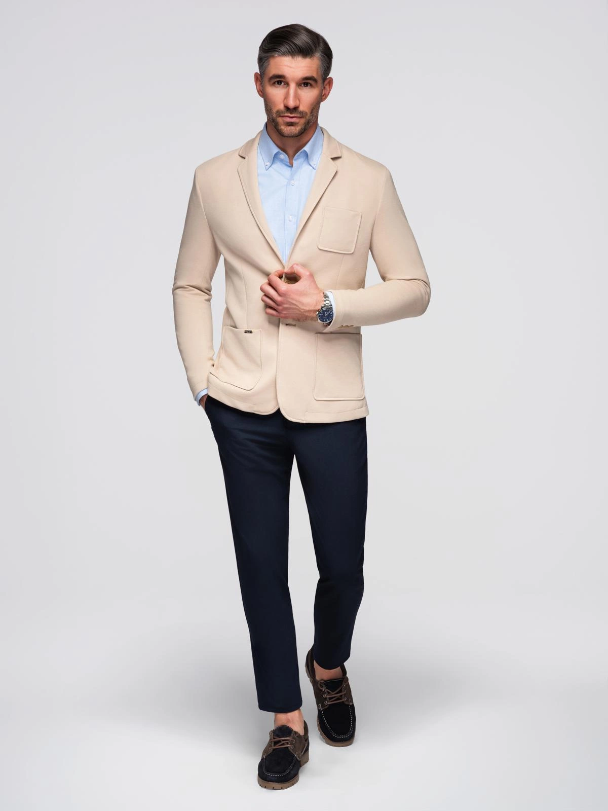 Vyriška SLIM striukė iš subtilaus struktūrizuoto trikotažo - smėlio spalvos V5 OM-BLZB-0101