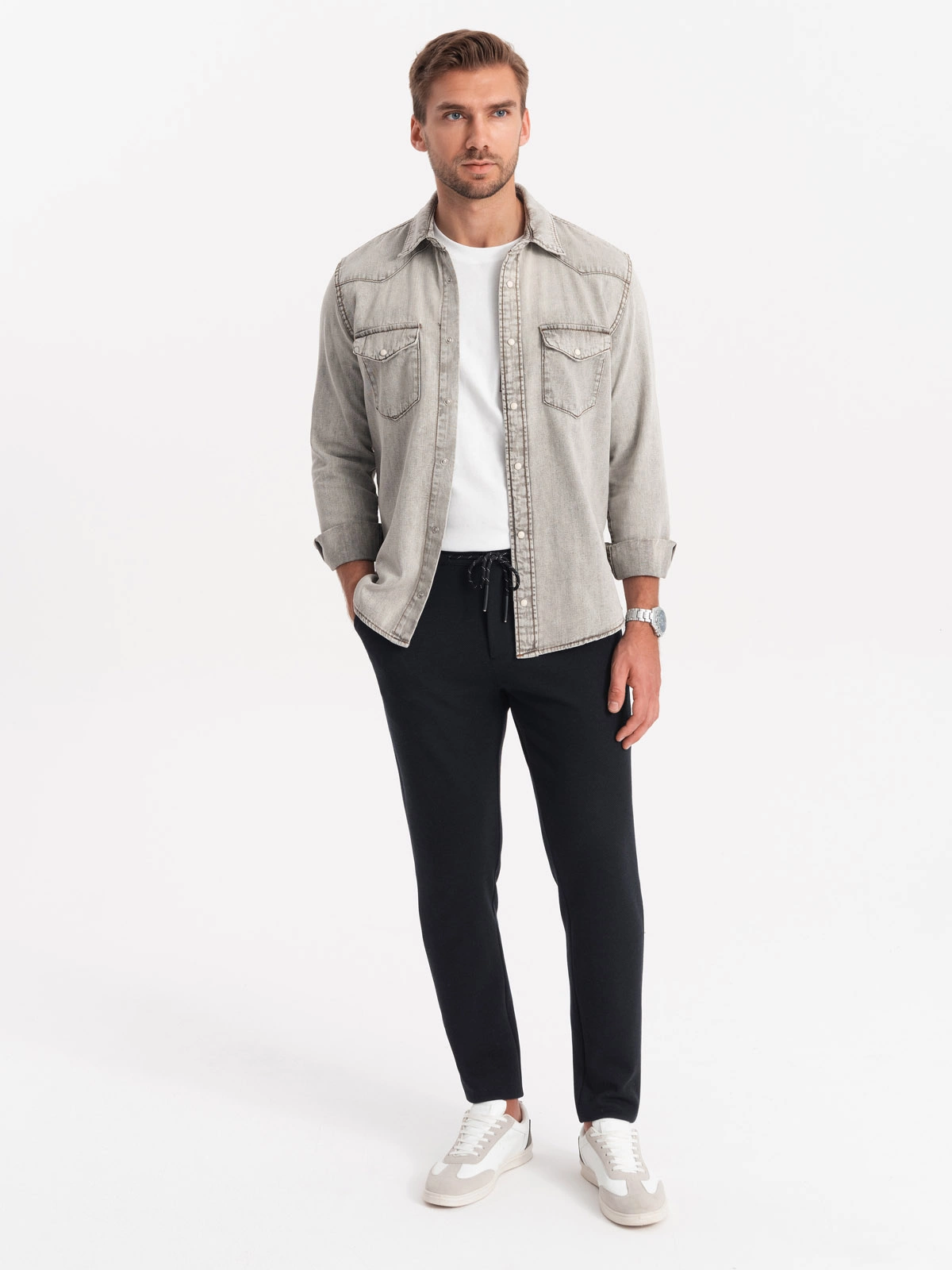 Vyriškos megztos kelnės su elastinga juosta - juodos V4 OM-PACP-0116