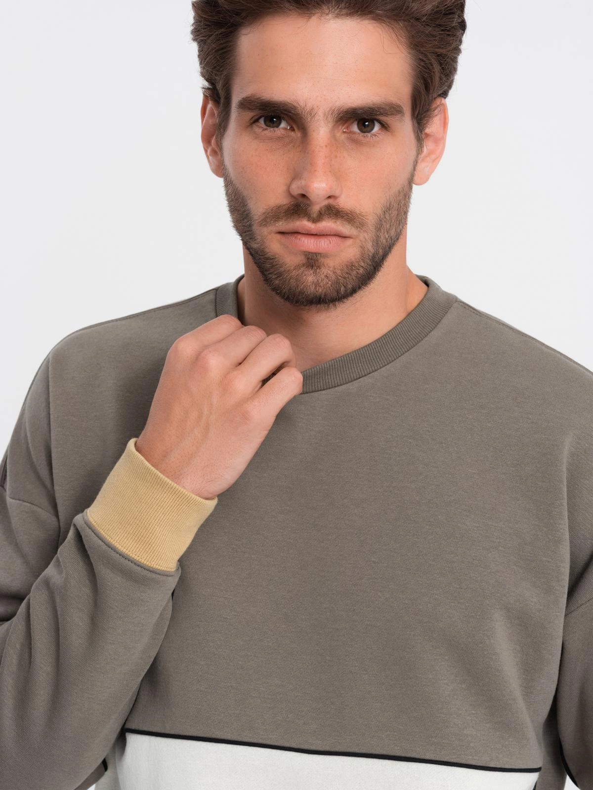 Vyriškas megztinis OVERSIZE su kontrastiniu spalvų deriniu - chaki V7 B1673