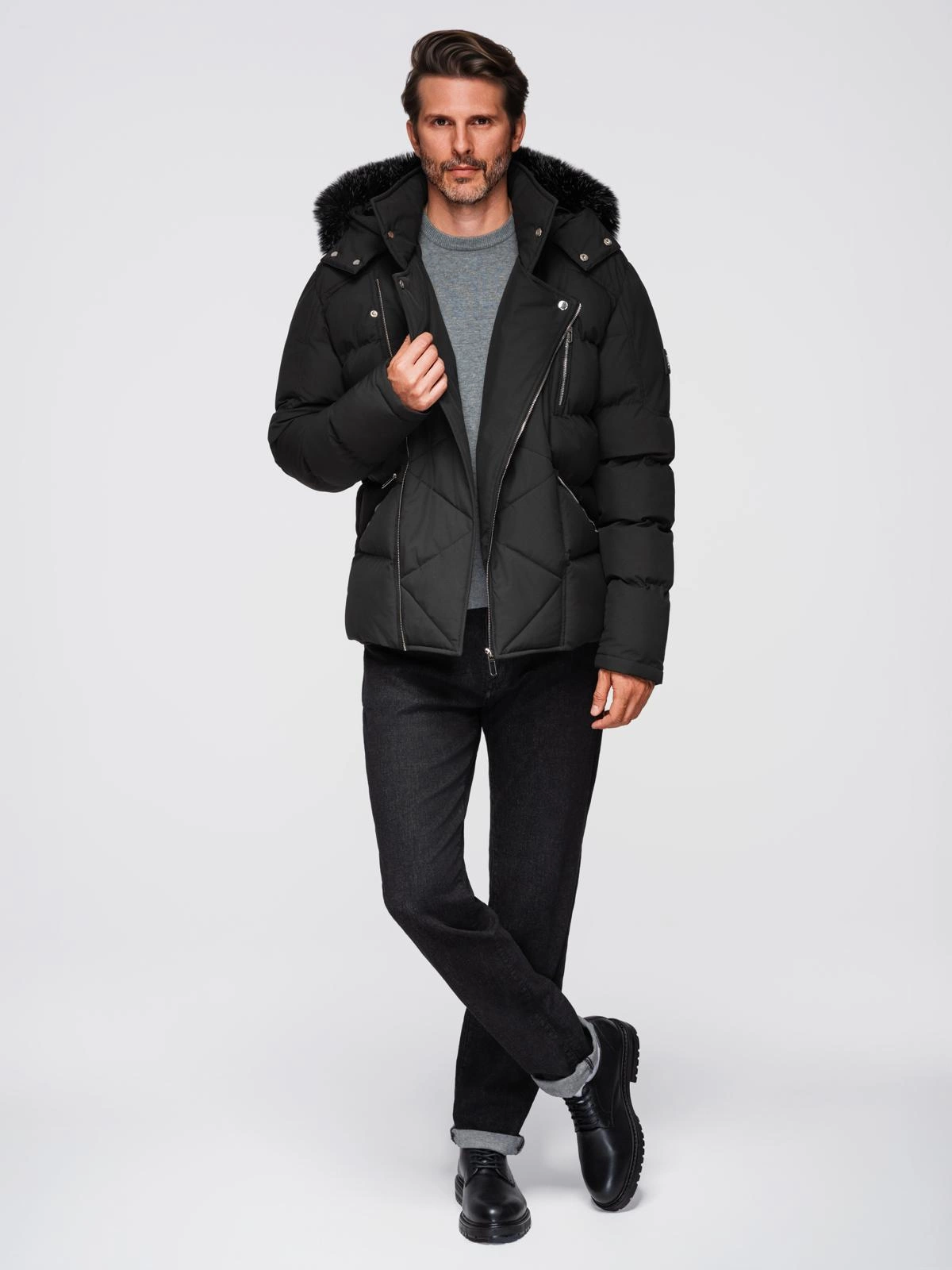 Vyriška dygsniuota striukė su gobtuvu - juoda V1 OM-JAHP-0252