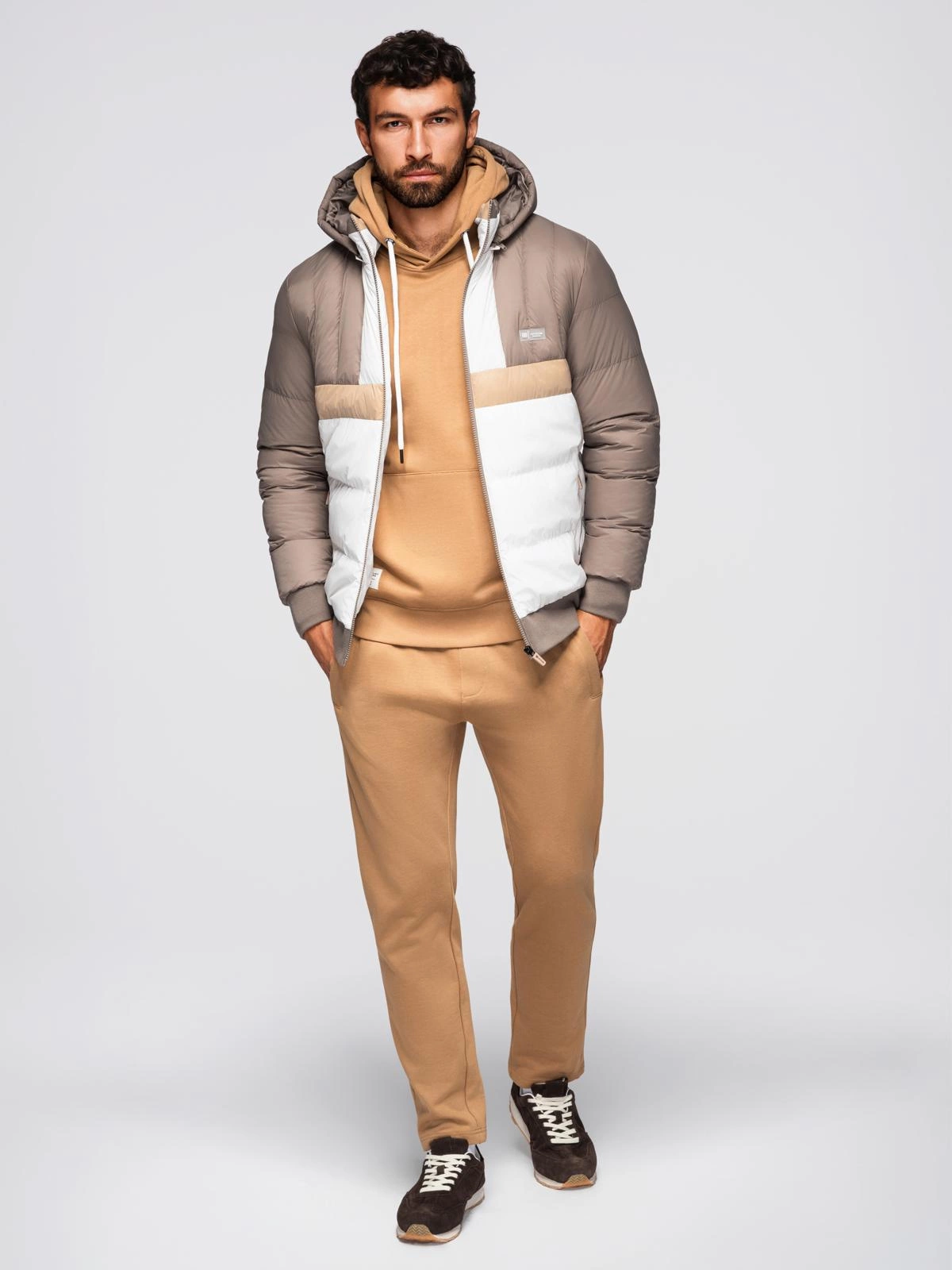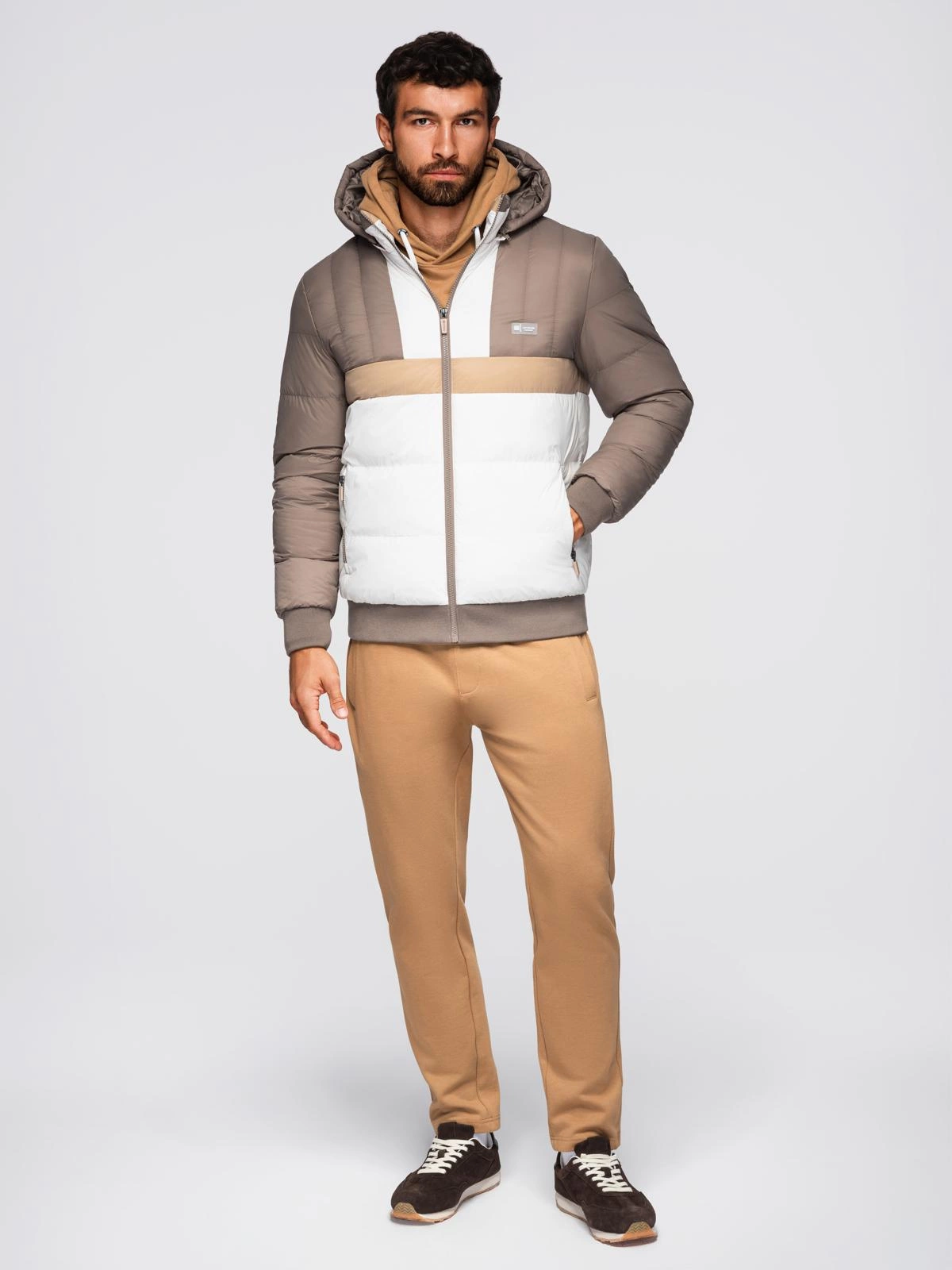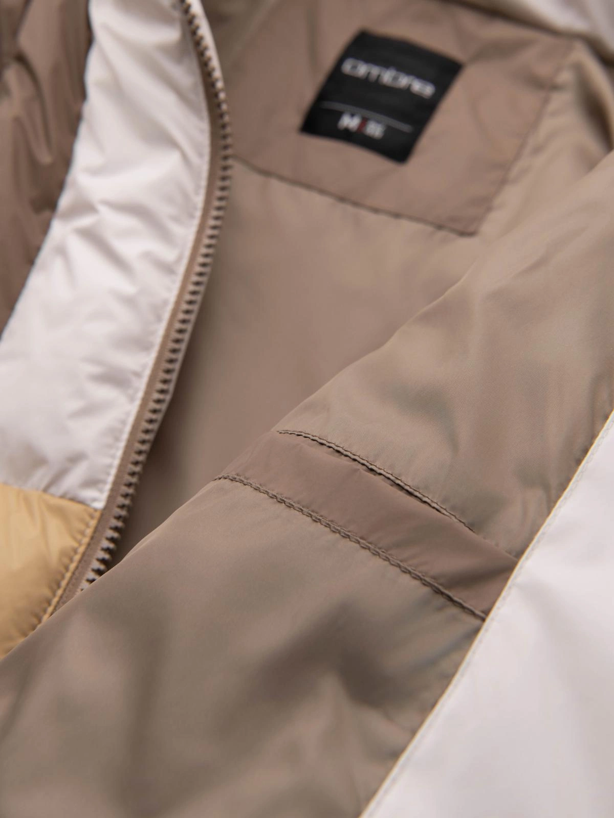 Vyriška spalvinga retro sportinė striukė - smėlio ir baltos spalvos V2 OM-JALP-0296