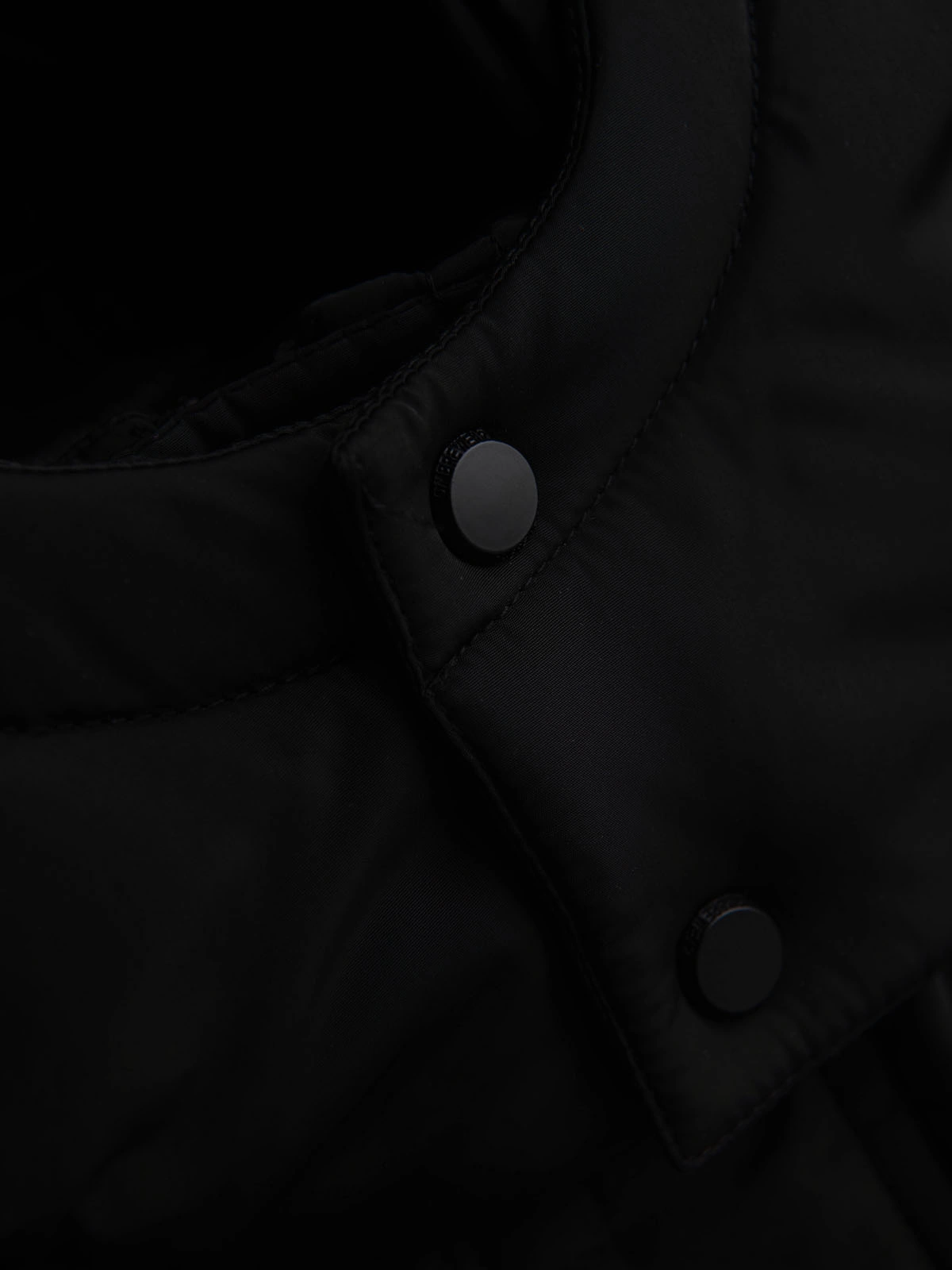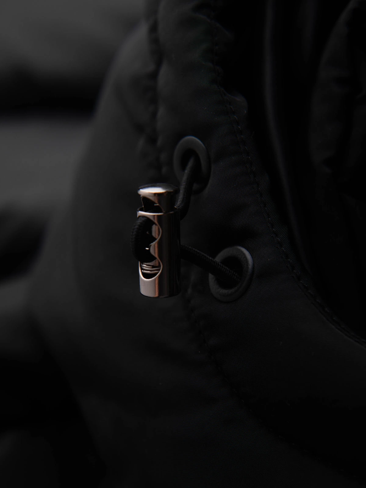 Vyriška dygsniuota striukė su aukšta apykakle ir gobtuvu - juoda V1 OM-JALJ-0266