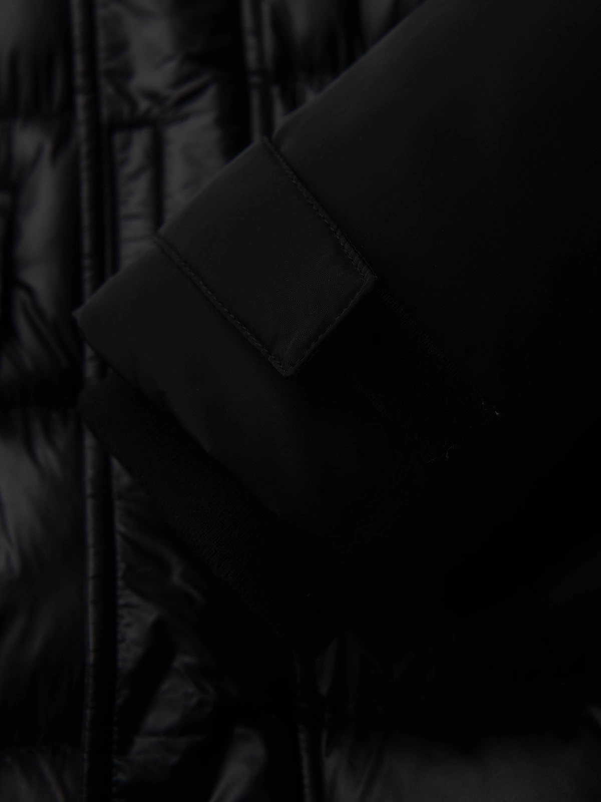 Stilinga ir tvirta vyriška striukė iš "Ombre Eximio" kolekcijos skirta vyrams, vertinantiems funkcionalumą ir rafinuotą miesto išvaizdą. Blizgių ir matinių plokščių derinys suteikia jai modernumo, o ilga forma su gausiu paminkštinimu užtikrina šilumą net ir šaltomis dienomis. Tai puiki striukė žiemos išvykoms - tiek į darbą, tiek savaitgalio pasivaikščiojimams.