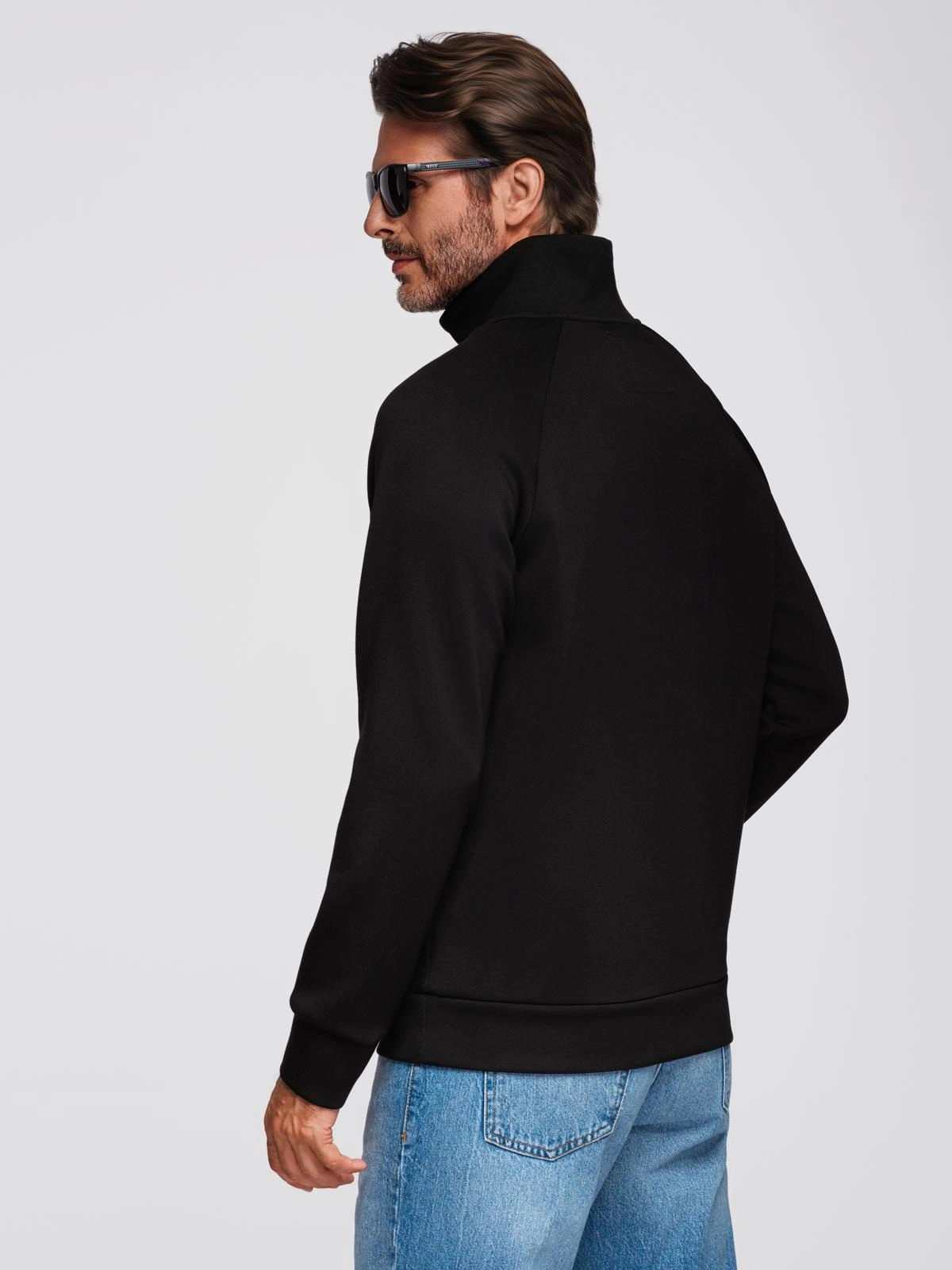 Vyriškas džemperis su aukšta apykakle ir kontrastiniu raštu - juodas V1 OM-SSZP-0211