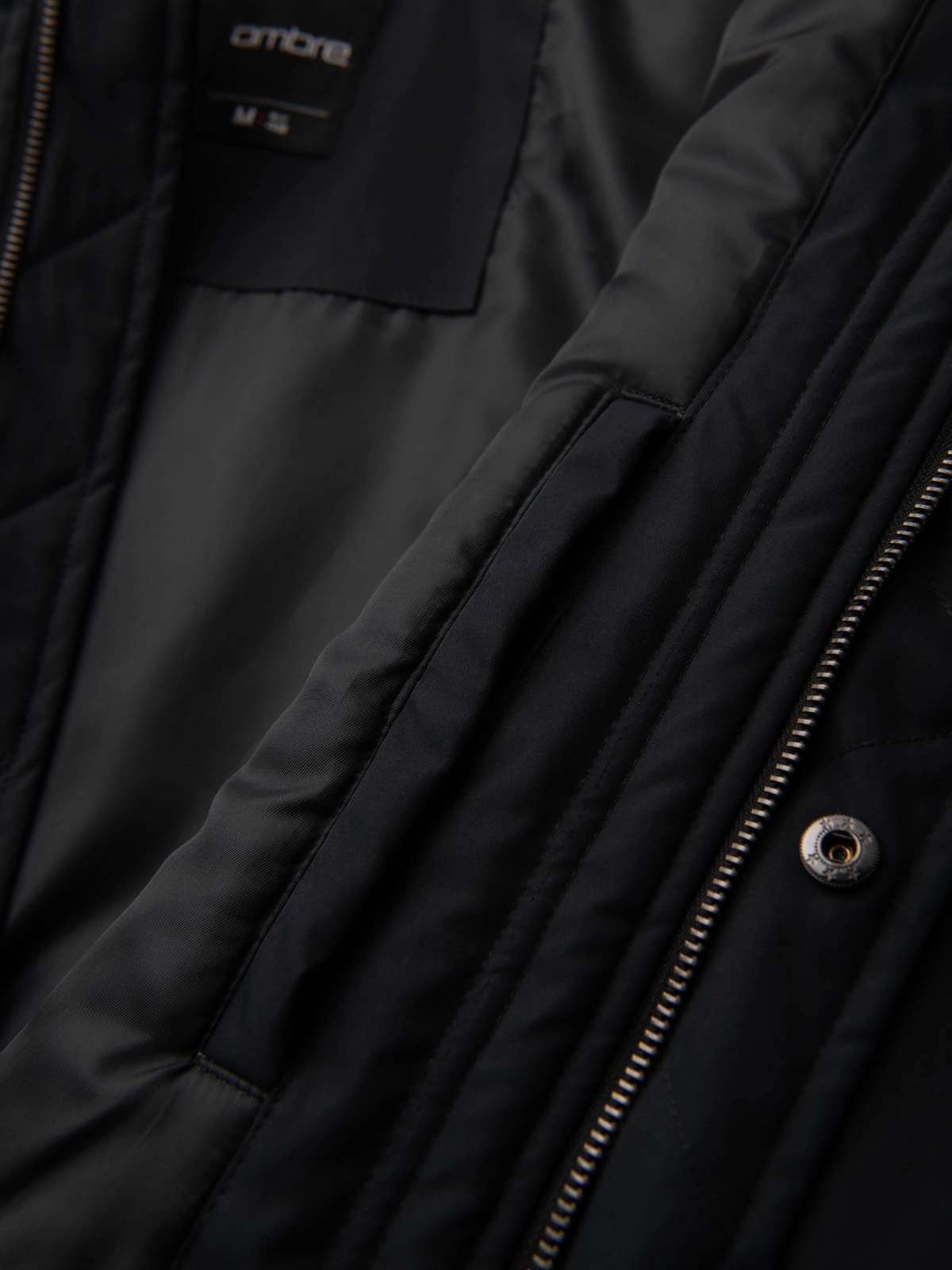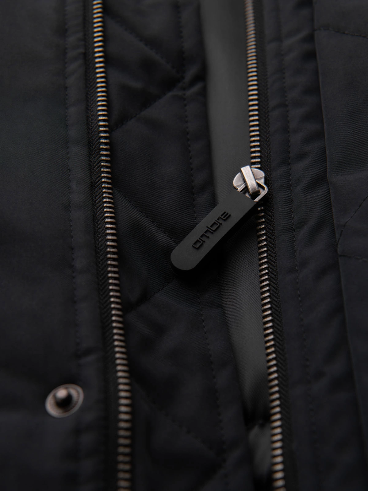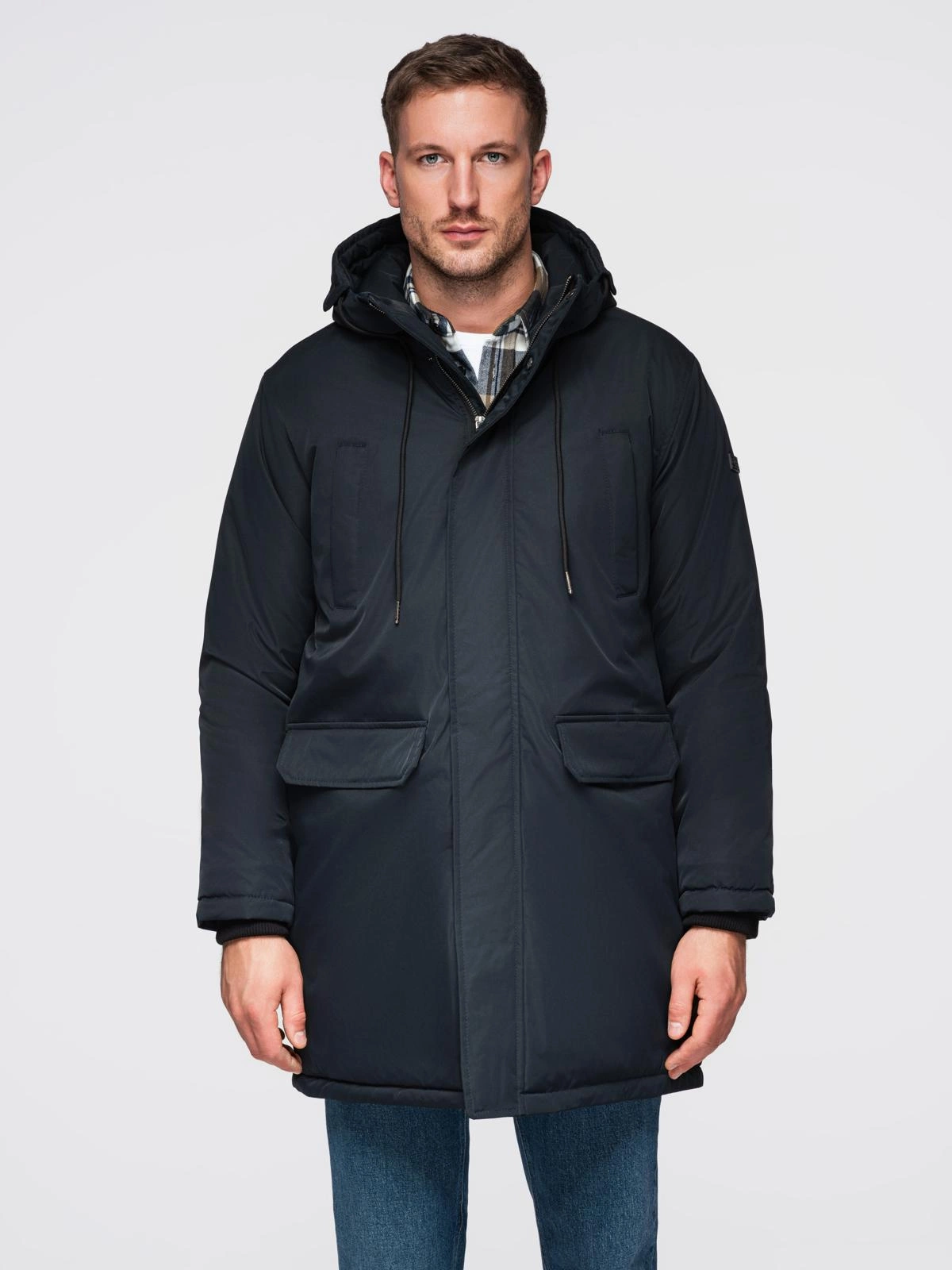 Klasikinė ilga vyriška striukė su kapišonu - juoda V6 OM-JAPJ-0313