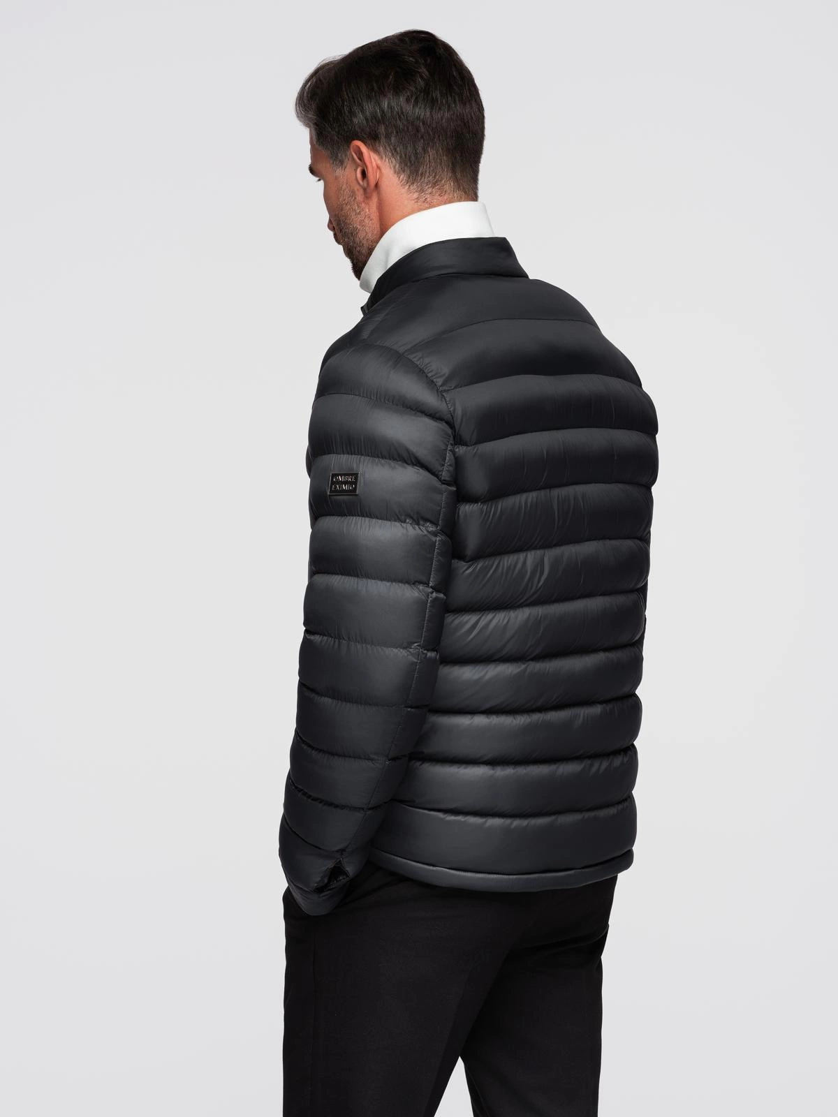 Vyriška dygsniuota klasikinė striukė su atsegama apykakle - juoda V1 OM-JALP-0261