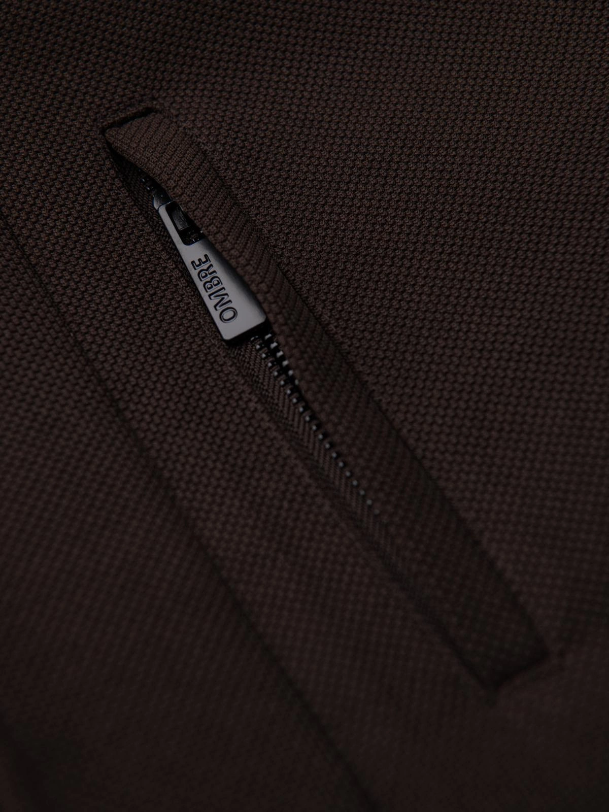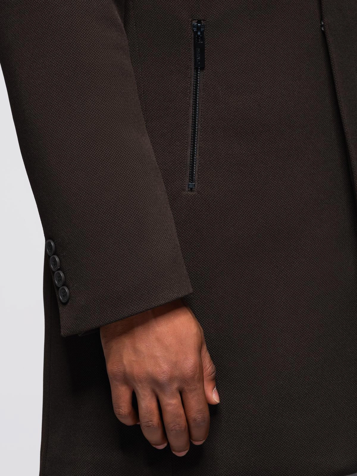 Vyriškas struktūriškas prigludęs paltas su aukšta apykakle - tamsiai rudas V5 OM-COWC-0136