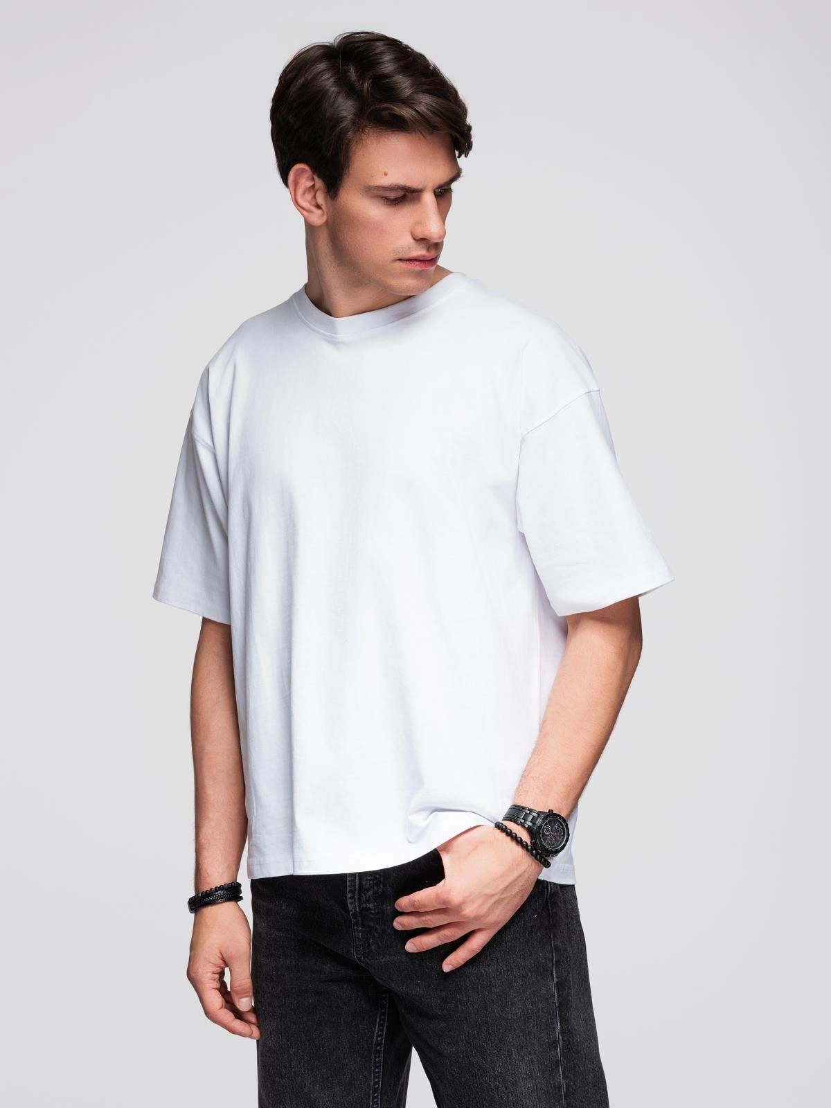 Vyriški medvilniniai marškinėliai su blizgiais sparnų motyvais ant nugaros - balti V2 OM-TSCT-0289