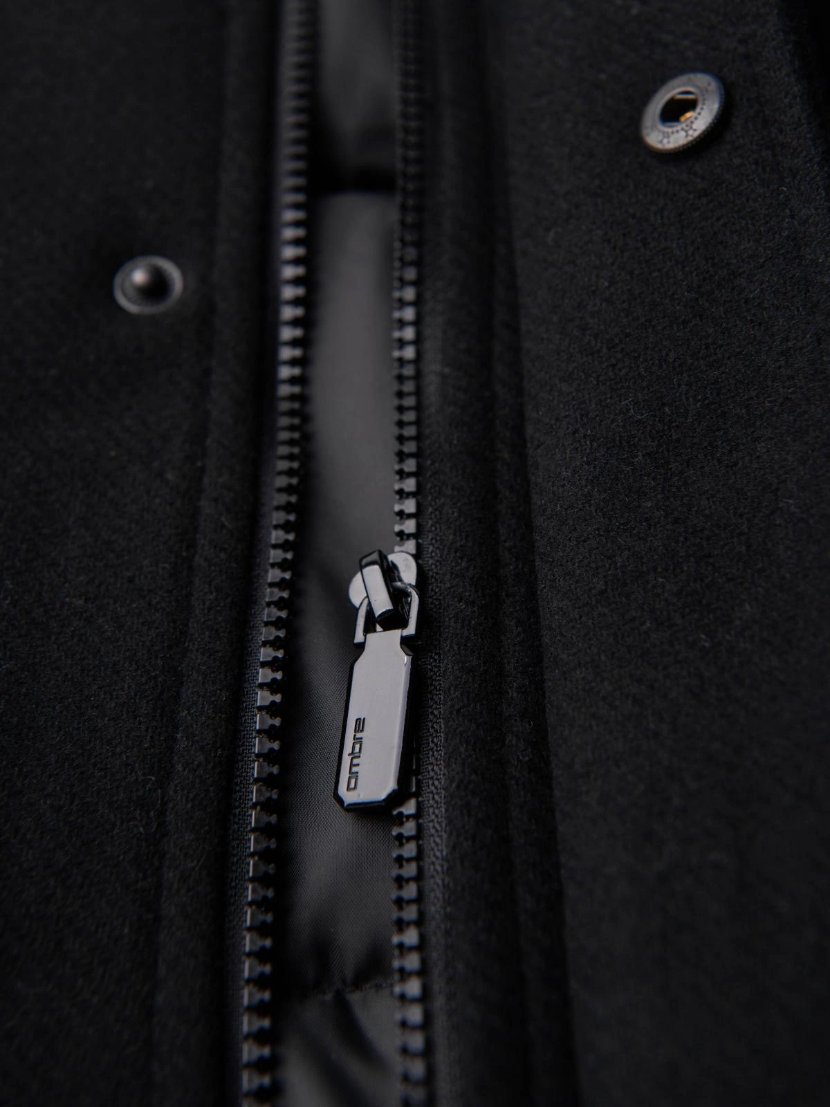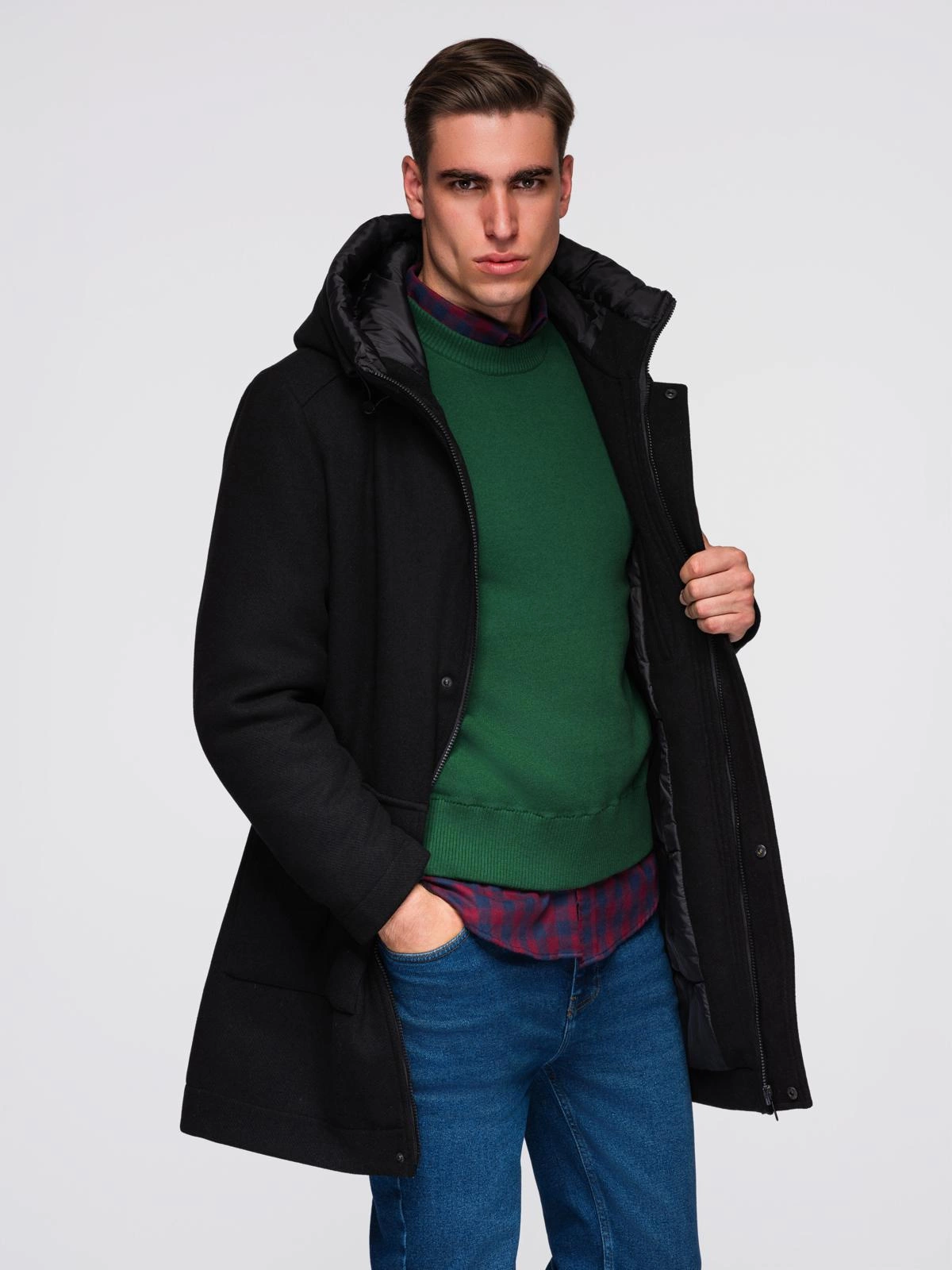 Vyriškas vilnonis paltas su gobtuvu - juodas V1 OM-COWC-0132