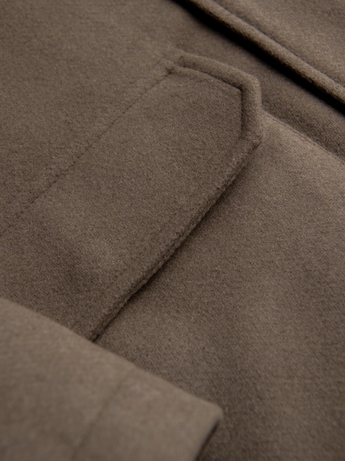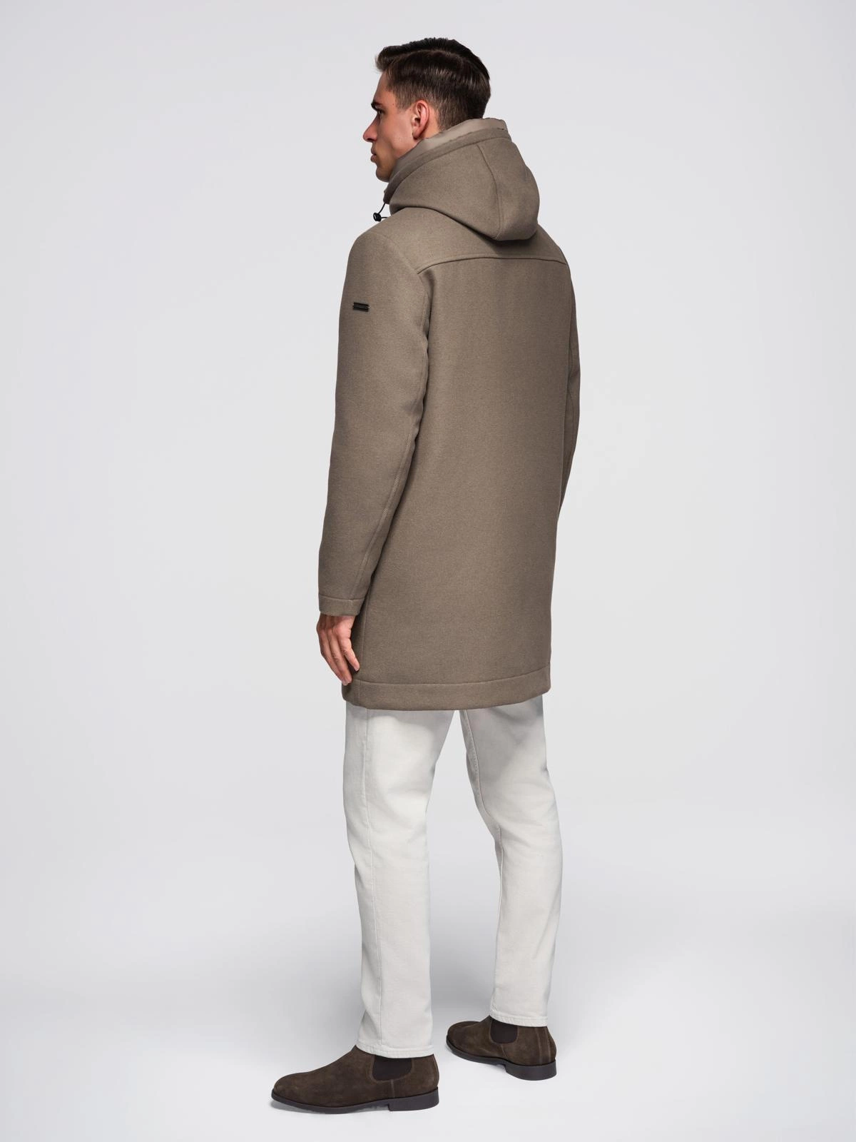 Vyriškas vilnonis paltas su gobtuvu - chaki spalvos V2 OM-COWC-0132