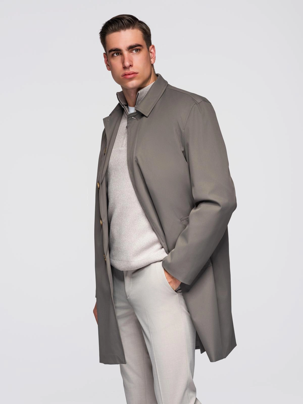 Minimalistinis vyriškas paltas su nuimama liemene - pelenų spalvos V6 OM-COLC-0139