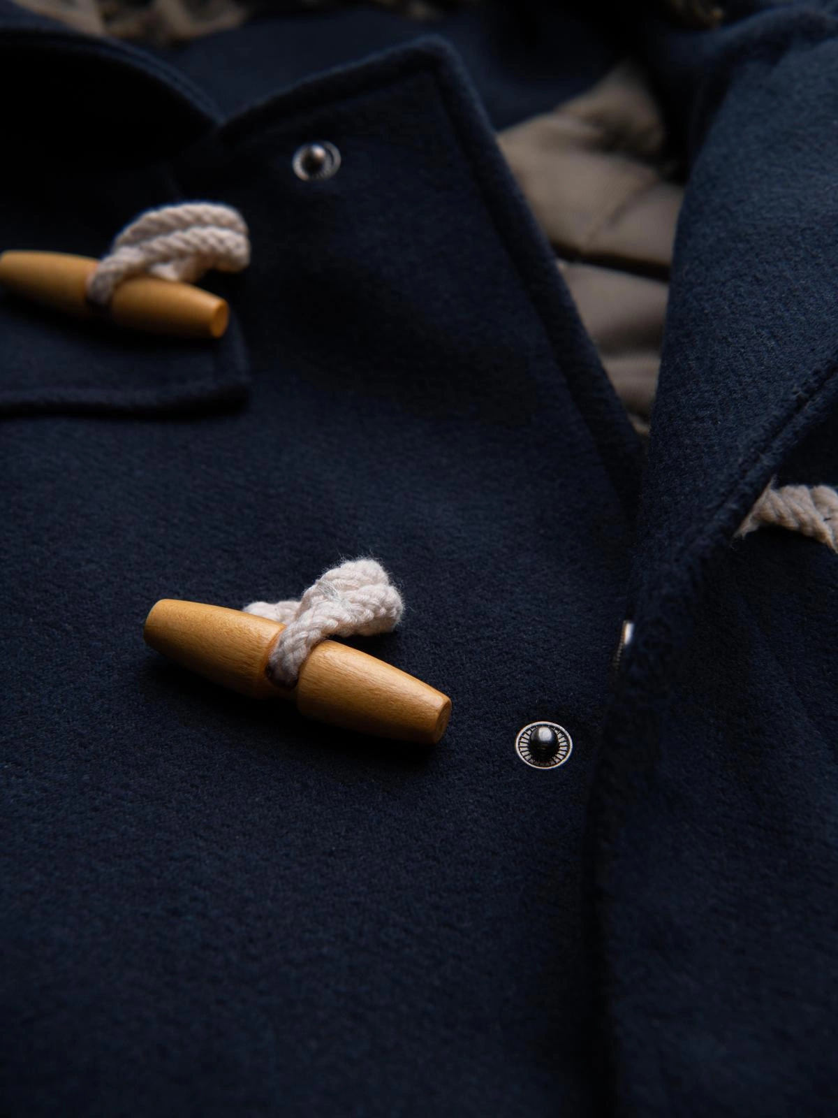 Stilingas, klasikinis ir idealiai tinkantis šaltesnėms dienoms - šis HERITAGE linijos paltas sujungia nesenstančio kirpimo ir modernaus funkcionalumo elementus. Šiltas ir patogus, jis traukia akį originaliu mediniu smeigtuku užsegamu užsegimu ir kontrastingomis virvelėmis, kurios papildo išvaizdą. Puikus pasirinkimas vyrams, vertinantiems tradicinį stilių su laisvalaikio neįpareigojančio nerūpestingumo prieskoniu.