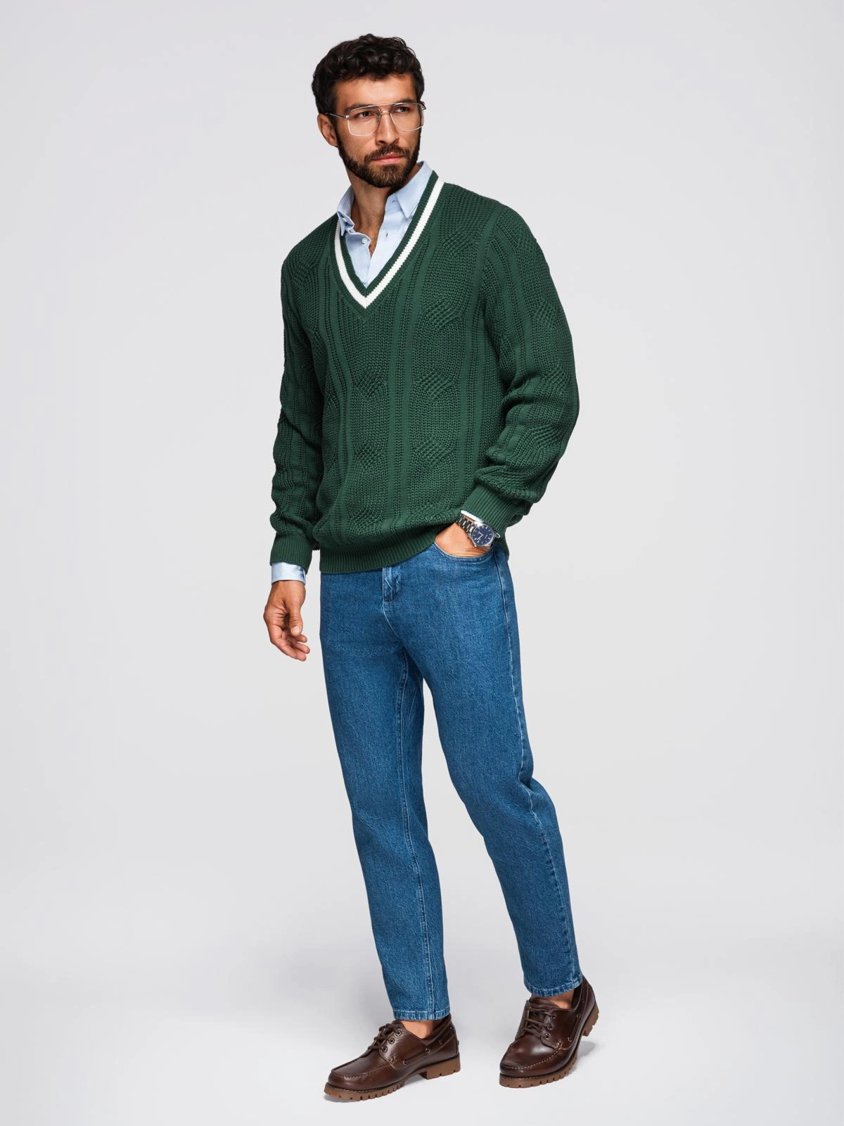 Vyriškas languotas džemperis su iškirpte - žalias V3 OM-SWSW-0151