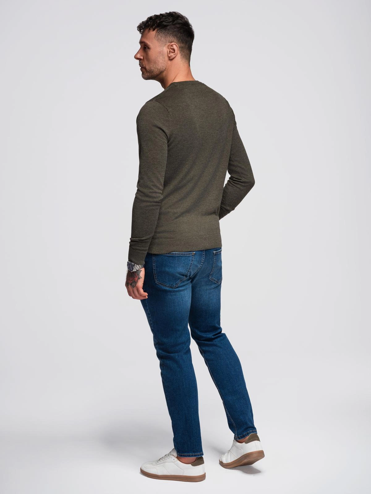 Vyriškas BASIC klasikinis džemperis iš viskozės su apvalia iškirpte - alyvuogių melanžas V17 OM-SWBS-0106