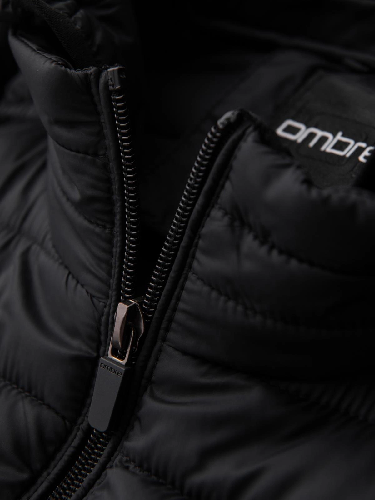 Klasikinė vyriška dygsniuota striukė su kišenėmis - juoda V1 OM-JALP-0295