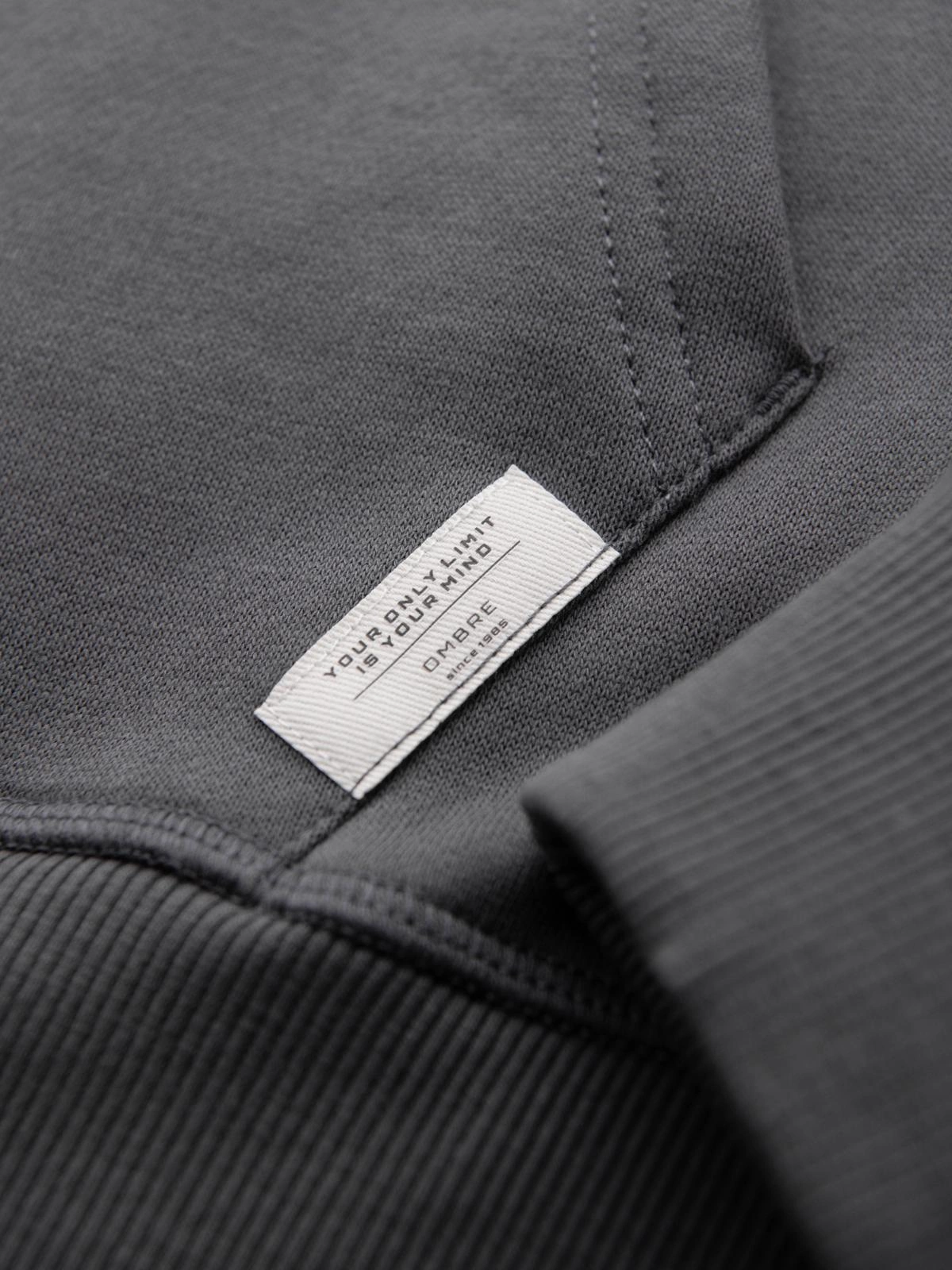 Vyriškas džemperis "kengūra" su siuvinėjimu ir gobtuvu - grafito spalvos V2 OM-SSNZ-0241
