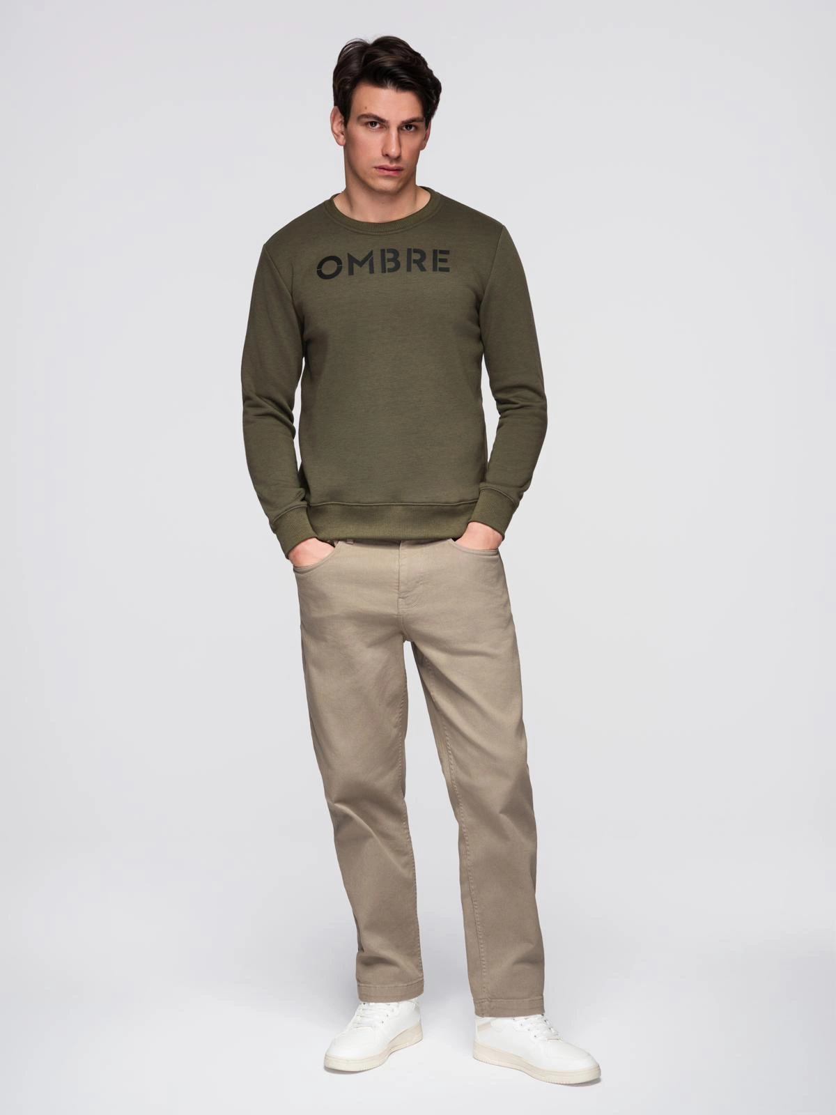Klasikinis vyriškas džemperis su užrašu - tamsiai pilkas V2 B1711